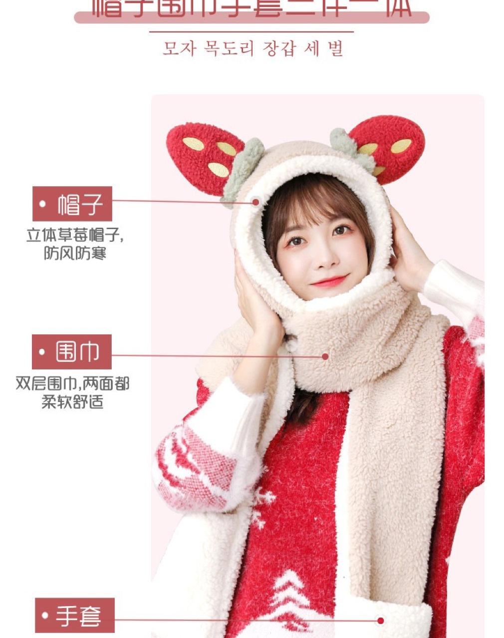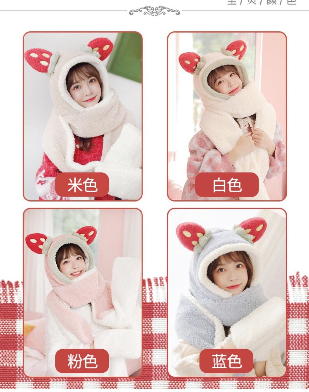 Outono e inverno chapéu de pelúcia quente bonito cachecol chapéu luvas de três peças estudante estilo coreano um- peça chapéu de inverno