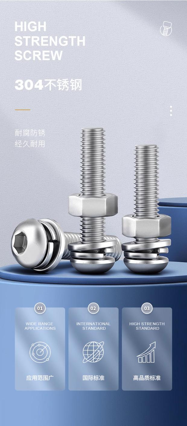 Compre Conjunto de Parafusos e Porcas de Aço Inoxidável 304 Cabeça Redonda Soquete Sextavado Completo com Arruela de Vedação Arruela de Pressão Parafusos Cabeça Panela M4M5M6 no atacado no Joom.pro