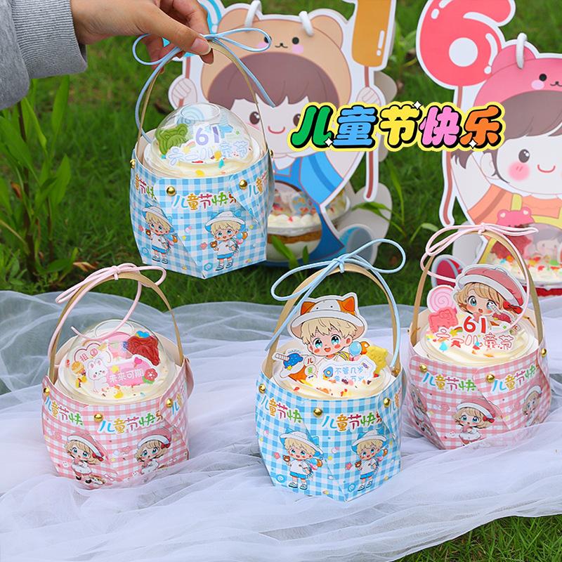 Decoração de bolo de copo bobo para dia das crianças, desenhos animados para meninos e meninas, plug-in, copo gordinho, caixa de embalagem de bolo portátil