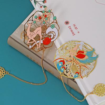 Marcador de metal clássico de montanhas e mares, série Kunlongfeng, marcador de veado de raposa de nove caudas, novos presentes culturais e criativos, lembranças para estudantes