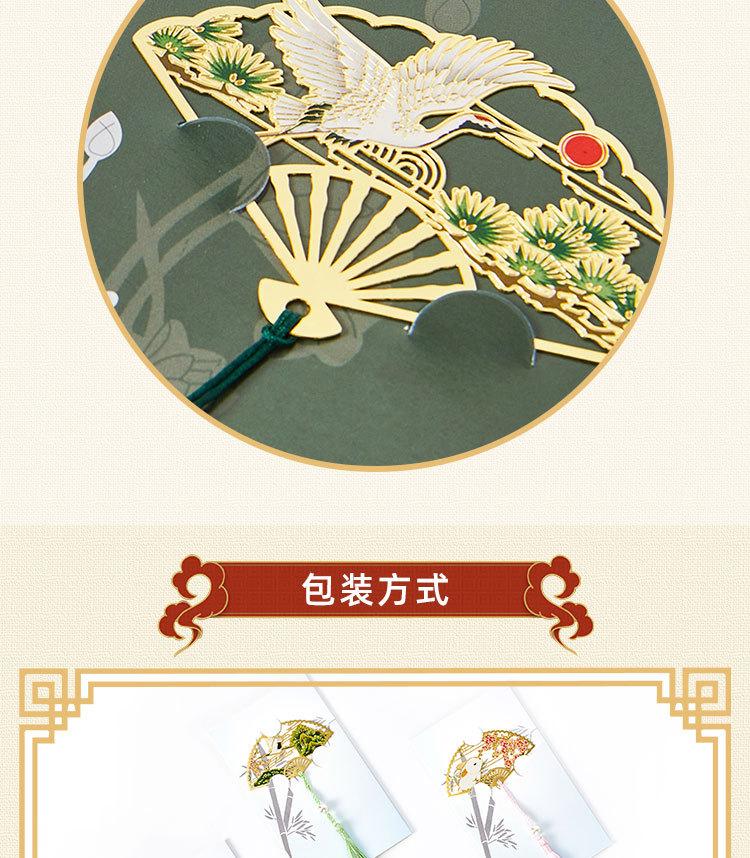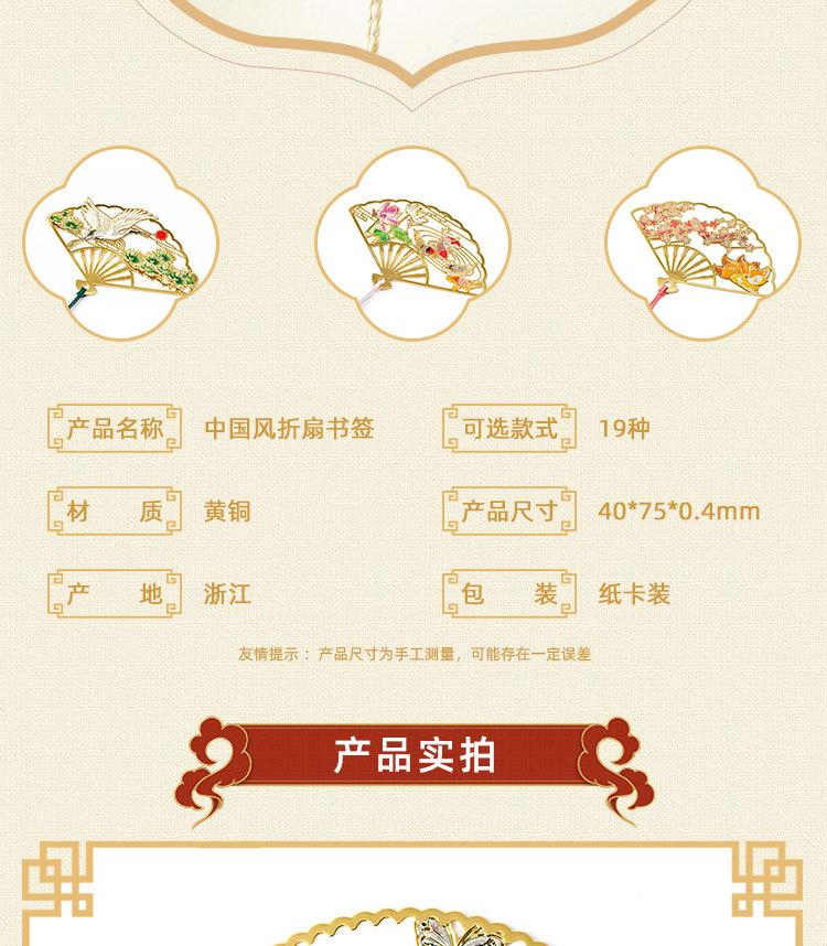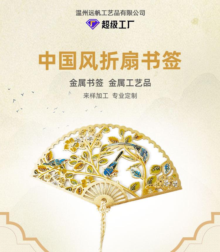 Marcador de Leque Dobrável Estilo Chinês Metal Latão Colorido Marcador Turístico Ponto Cênico Presente Comemorativo Arte em Cobre