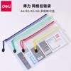 Deli 5654/5655/5656 Arquivo com zíper de grade Bolsa Armazenamento de papel de teste À prova d'água Arquivo de dados engrossado Bolsa