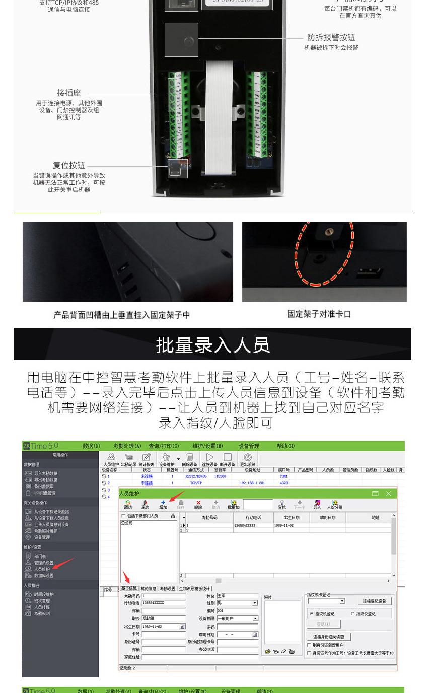 ZKTeco/tecnologia de controle central F7PLUS controle de acesso de presença por impressão digital sistema de controle de acesso por impressão digital integrado host