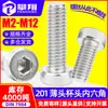 201 Aço Inoxidável Cabeça Fina Cilíndrica Cabeça Hexágono Parafuso Soquete Cabeça Baixa Cabeça Copo Hexágono Parafuso M3M4M5M6M8