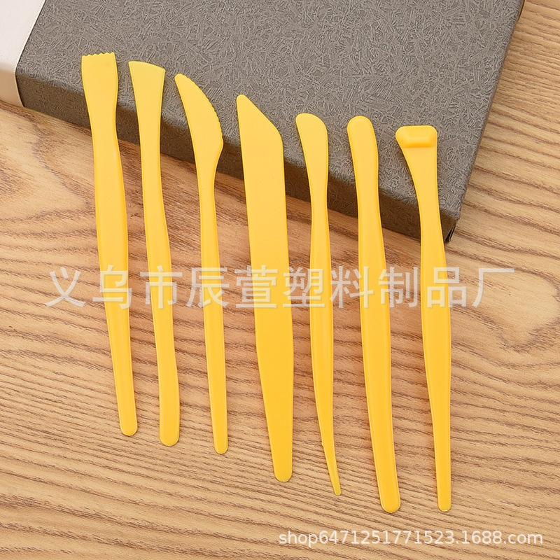 Argila de plástico amarelo argila macia escultura em argila faca de escultura ferramentas de cerâmica 7 peças ferramentas de modelagem de escultura DIY
