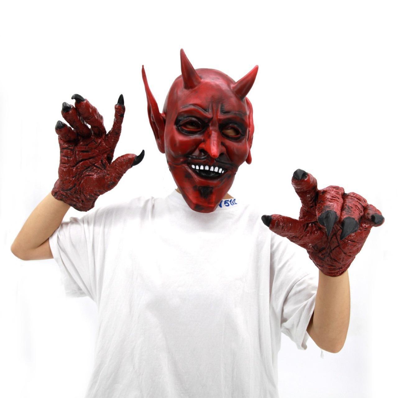 Halloween horror Red Bull Devil máscara Cosplay disfarade adereços terno luvas de látex atacado