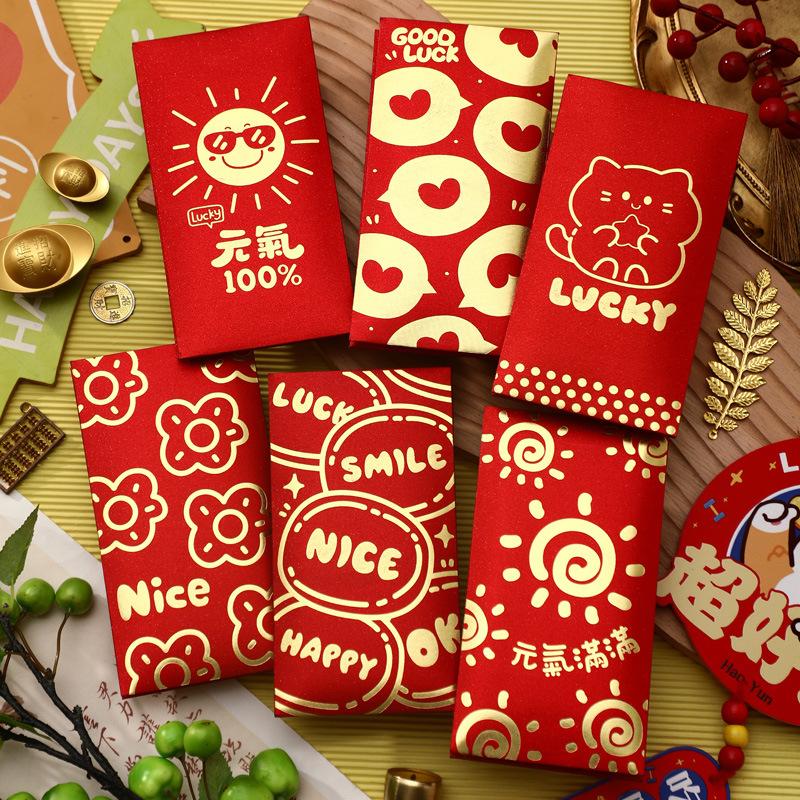 Fofos Envelopes Vermelhos de Desenho Animado do Ano do Cavalo Atacado Personalizado Criativo 2026 Novo Novo Ano Envelopes de Dinheiro da Sorte com Folha de Ouro