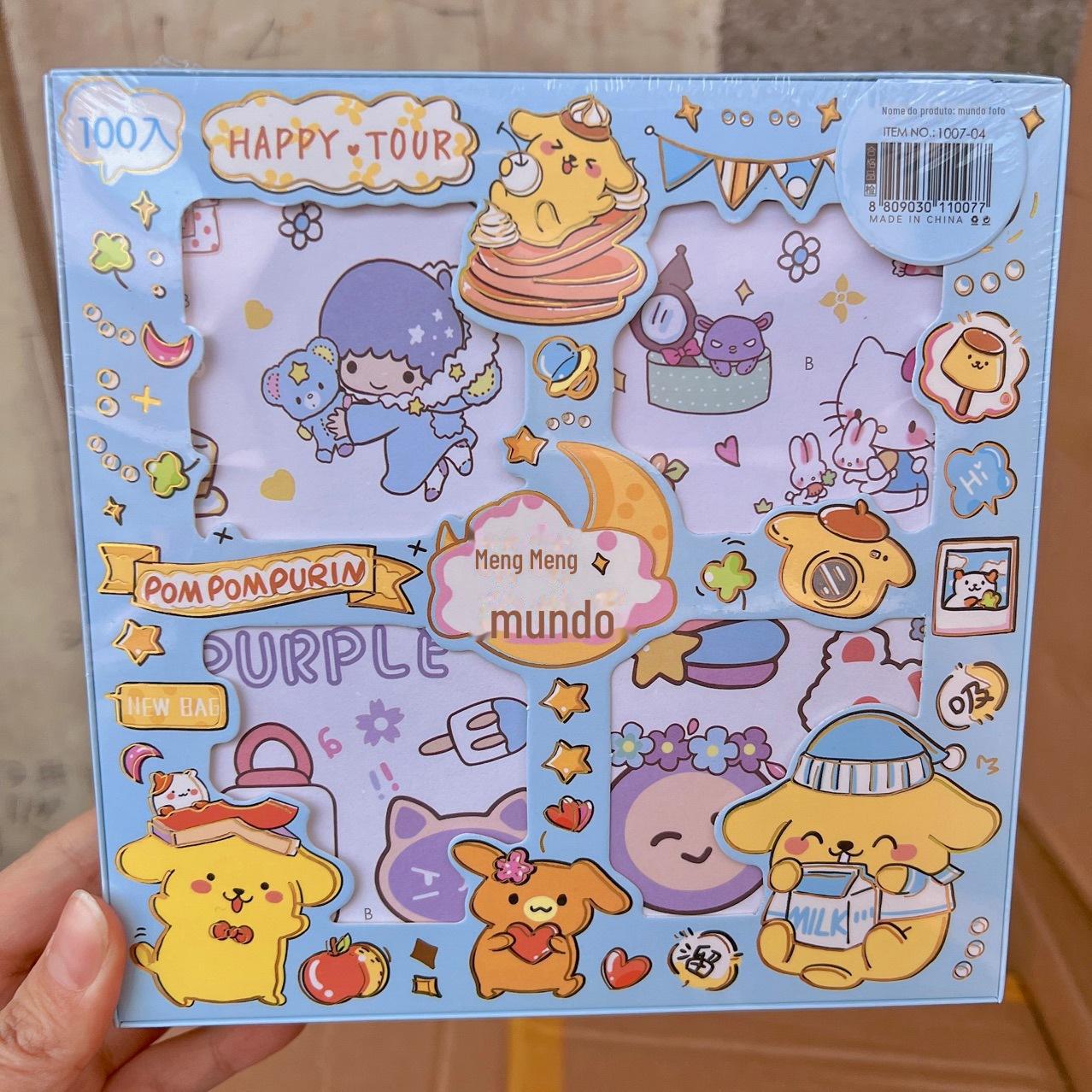 Cartoon New Sanrio Family 100 Mão Conta Adesivo Caixa de Presente e Papel Adesivo Estudante DIY Mão Conta Adesivo