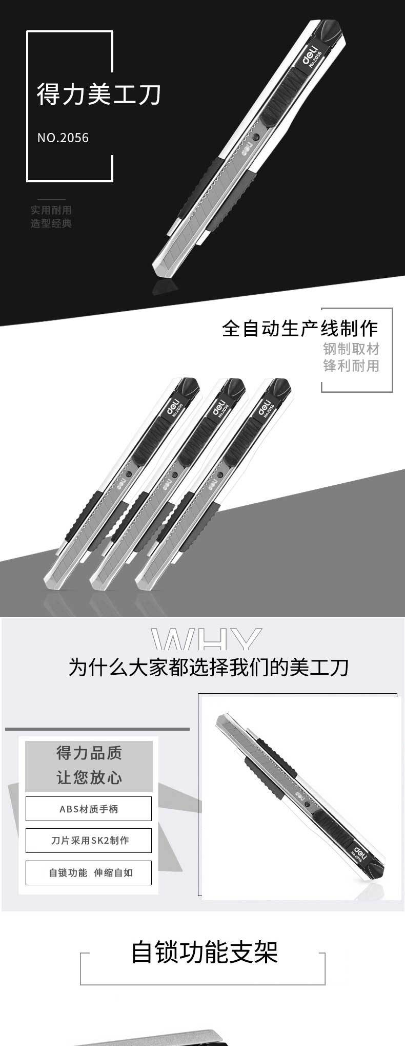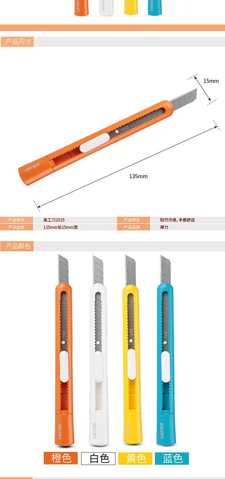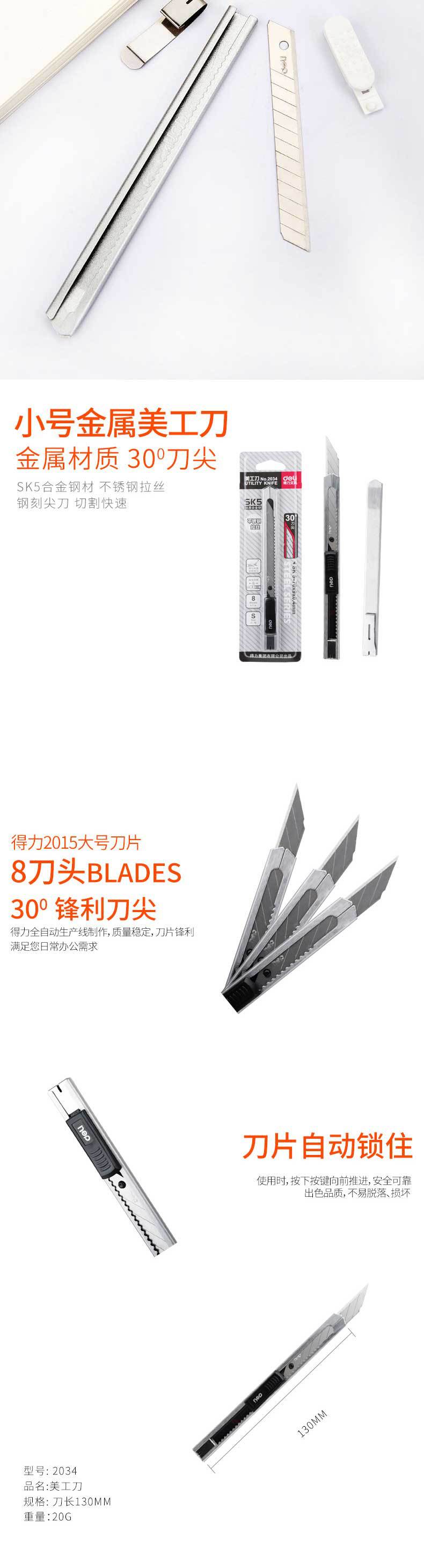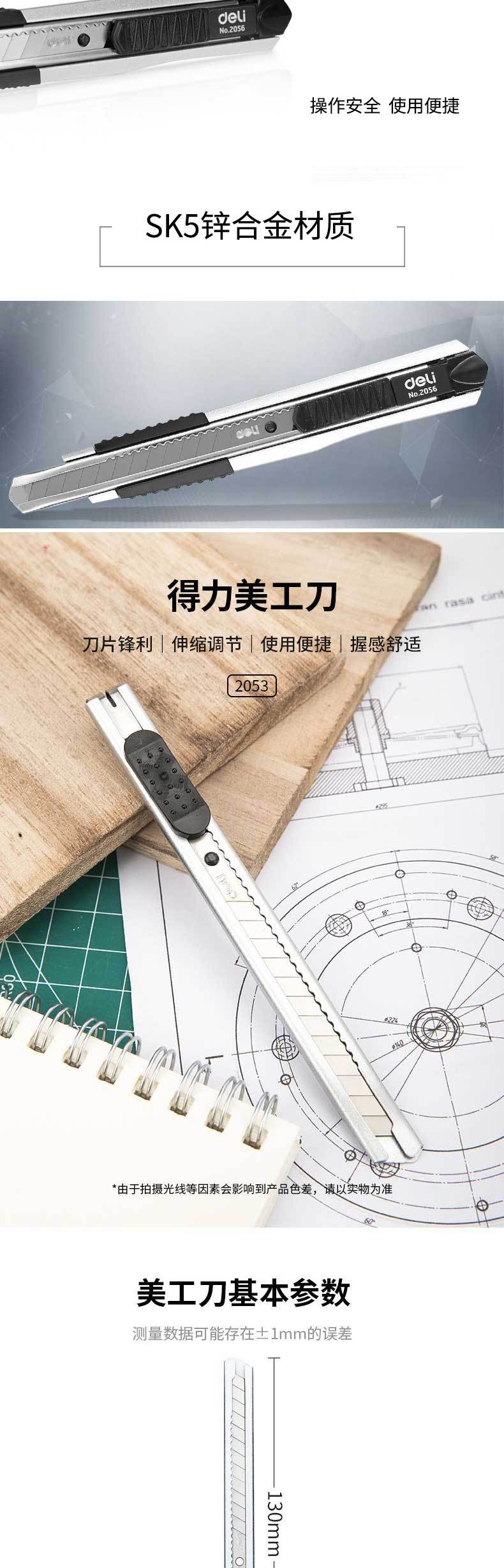 Deli 2053 faca de arte tamanho pequeno metal multi-função faca de corte de papel tamanho pequeno faca ferramenta faca papel de parede cortador faca manual
