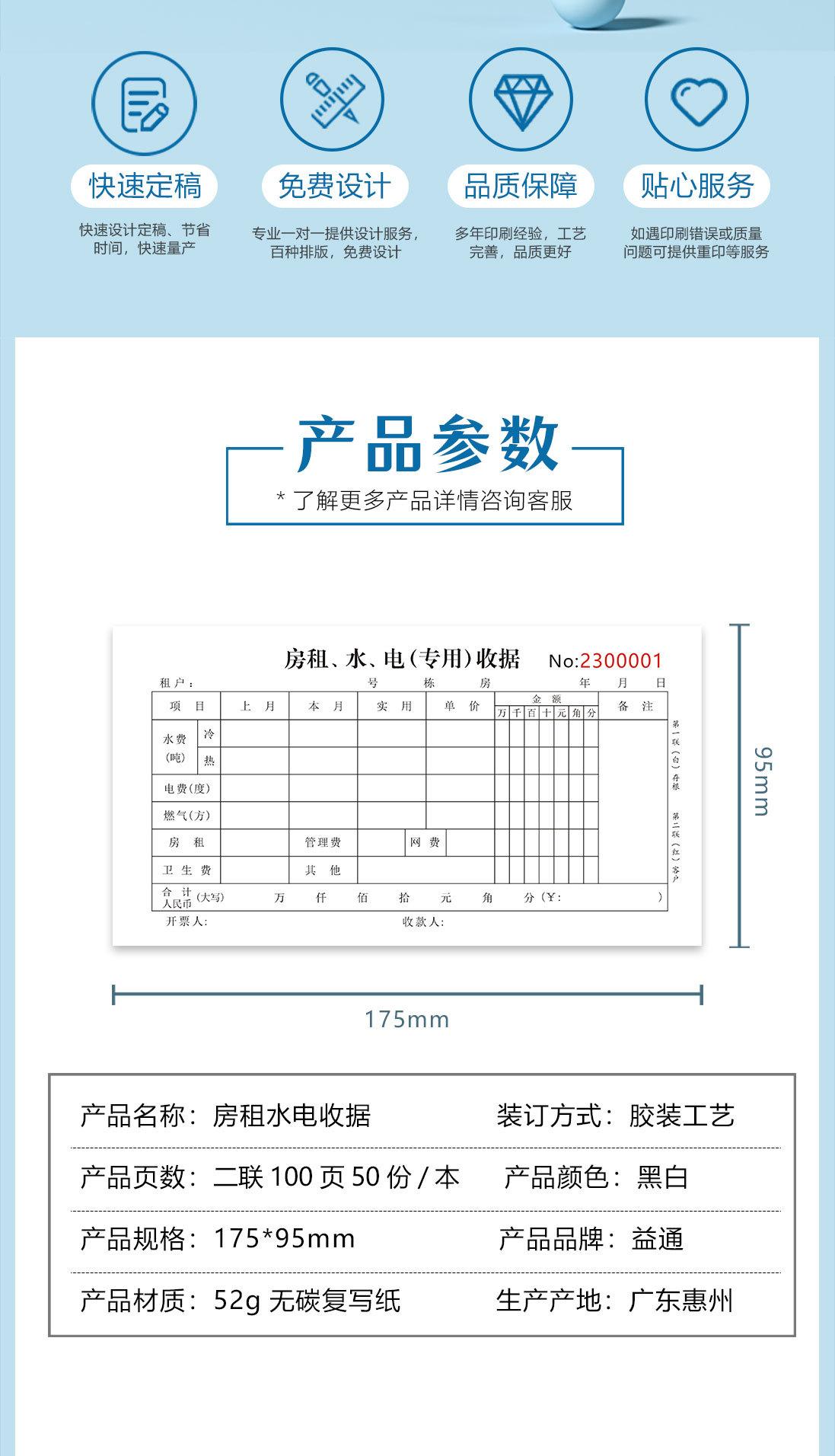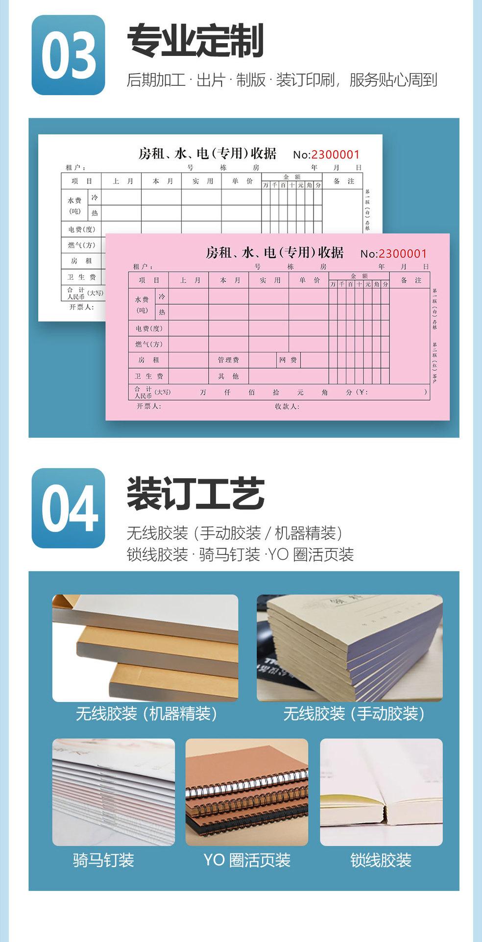 Water and electricity receipt two 100 pages 50 copies + integrated paper pad