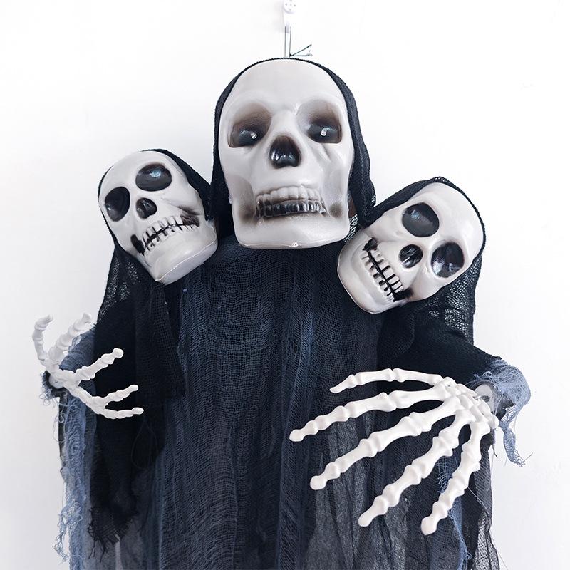 Cross-border New Halloween Três Crânio LED Luz Porta Pendurado Casa Assombrada Decoração Pingente Fantasma Festival Horror Party Pendurado