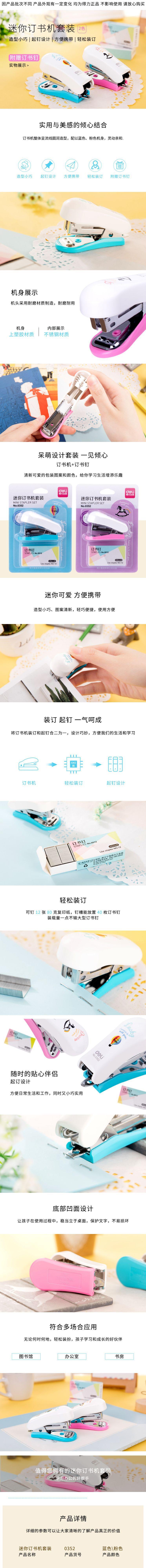 Deli 0352 mini grampeador terno grampeador grampeador + grampeador material do estudante