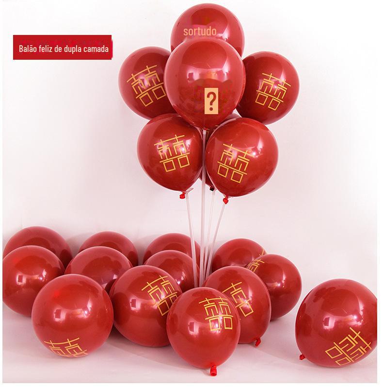 Balão de casamento atacado duplo único romã vermelha decoração de casamento engrossado produtos de casamento decoração layout do quarto de casamento