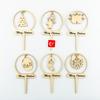 Tarjeta de pastel de árbol de Navidad con muñeco de nieve y tema navideño creativo de madera para decoración de fiesta.
