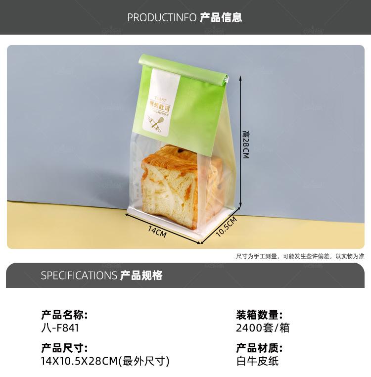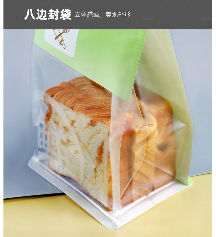 Novo saco de torrada assada fresca selado de oito lados, couro de vaca branco, fundo quadrado, saco de embalagem para pão, sobremesa de cozimento, saco de confeitar ocidental com adesivos