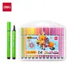Deli 70722 Caneta Aquarelável 24 Canetas Coloridas Caneta Colorida de Desenho Animado Conjunto de Cores Lavável Pincel Aquarelável Atacado para Colorir