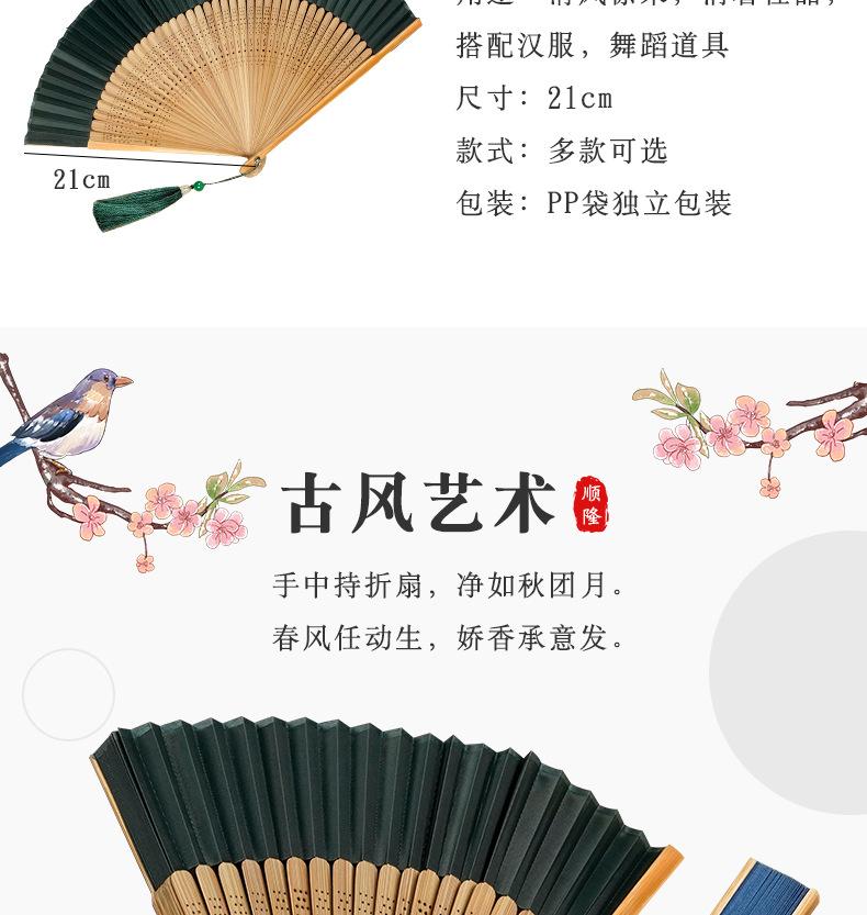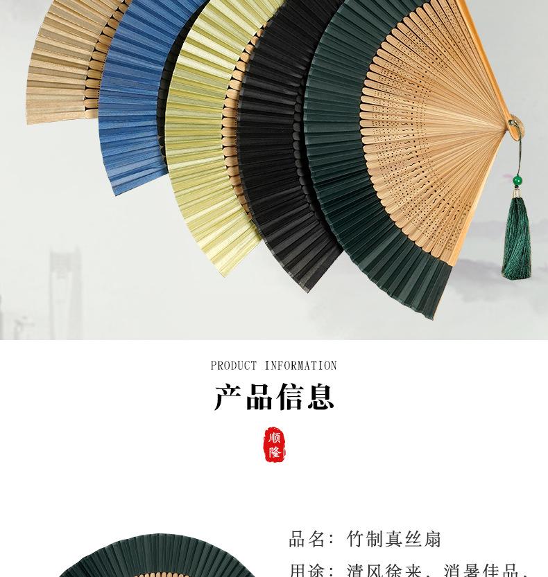Leque Dobrável de Bambu Retrô Estilo Antigo Estilo Chinês Leque de Dança de Verão Leque de Bambu Leque de Pano de Seda Atacado Personalização de Leque Dobrável