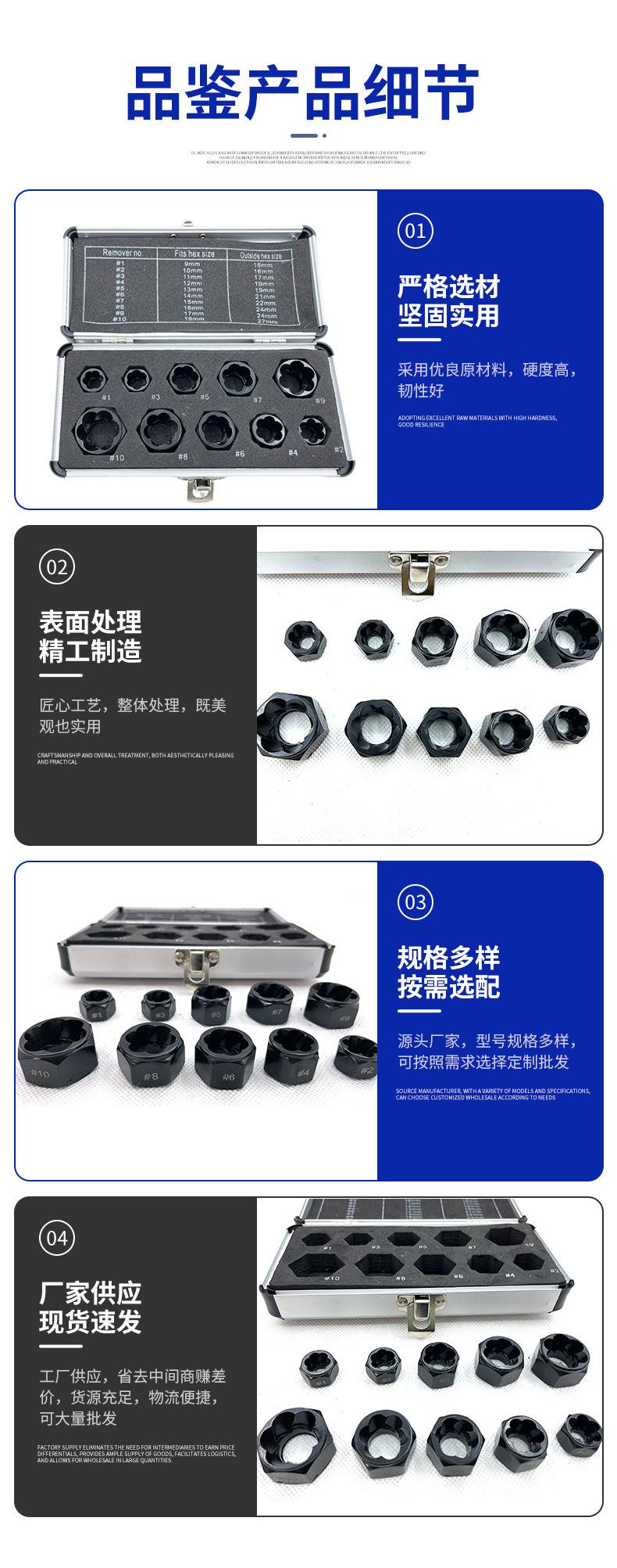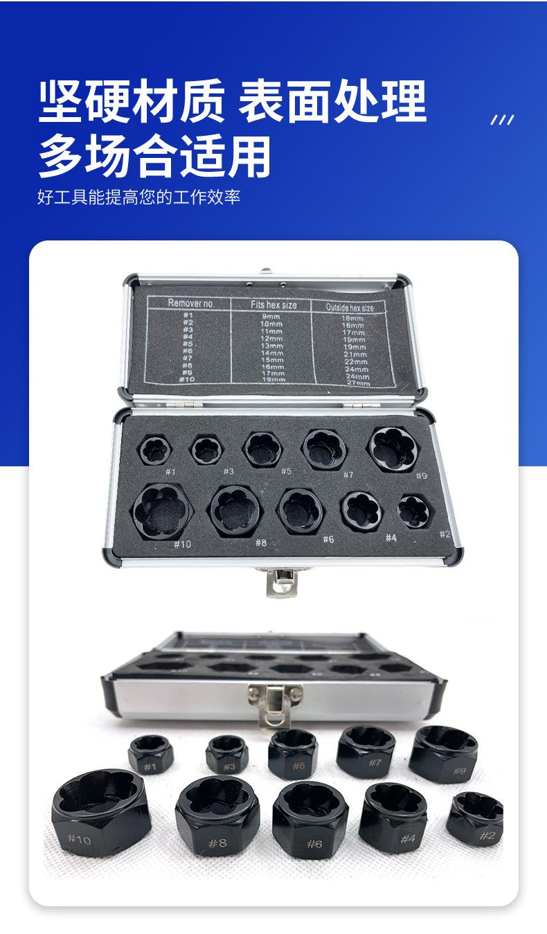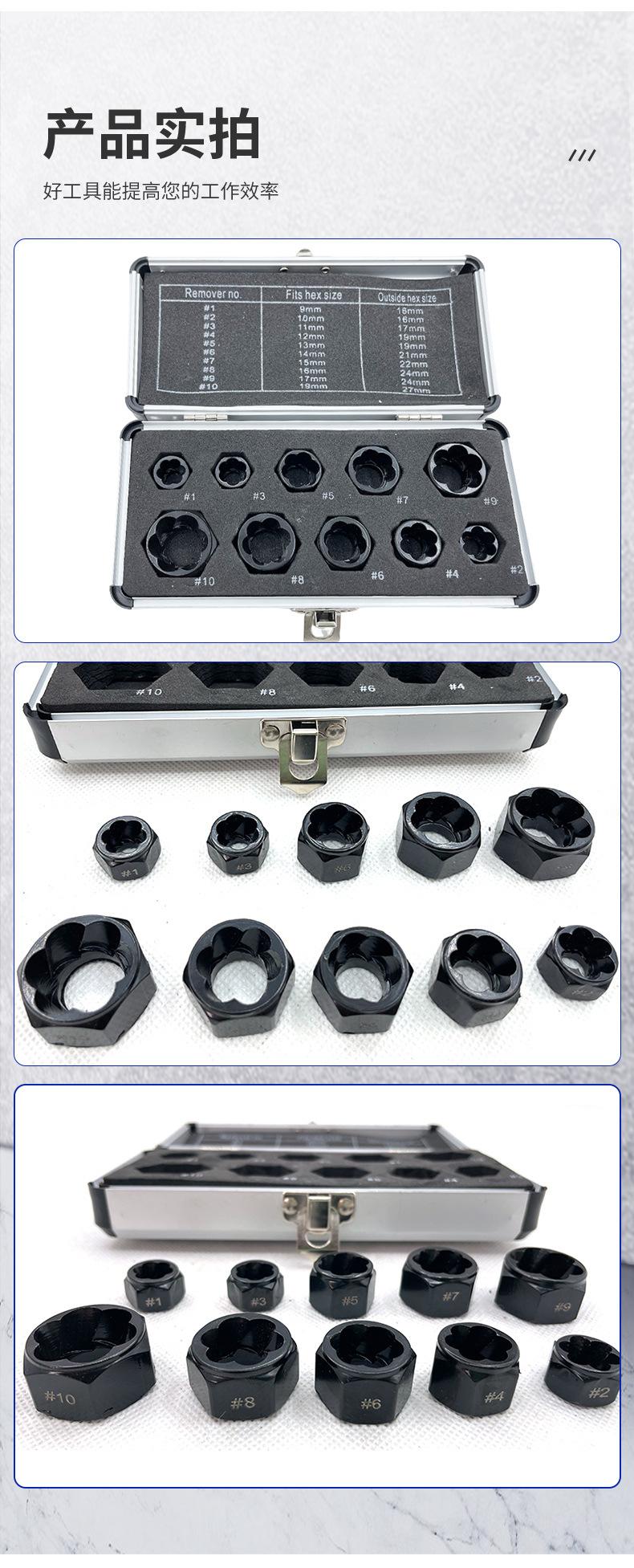 Conjunto de 10 Peças de Extrator de Porcas e Parafusos Danificados Hexagonal Enferrujado Quebrado Ferramentas Extratoras de Rosca