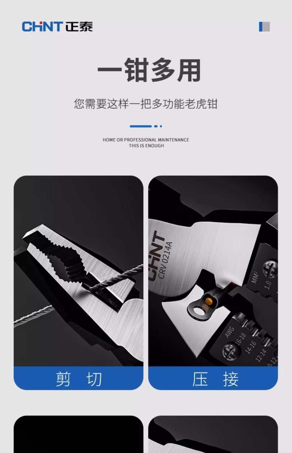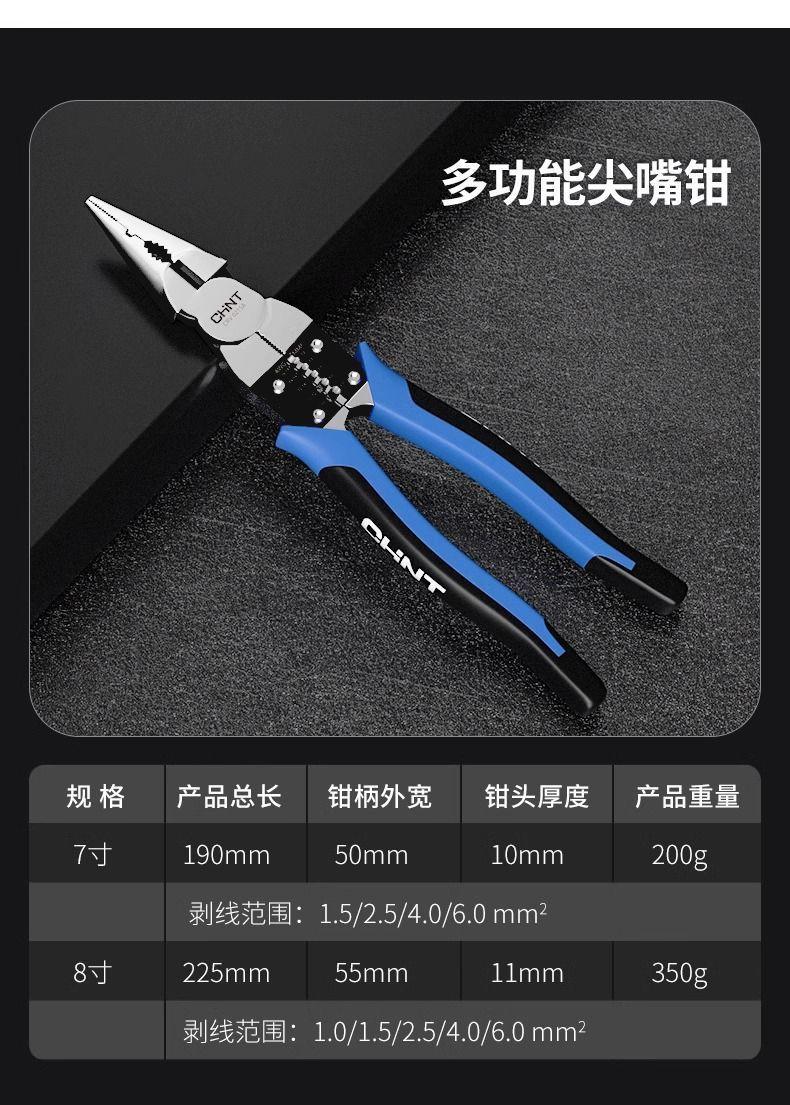 Alicate de fio elétrico Chint Vise, multifuncional, para economia de trabalho doméstico, alicate de cabo, alicate de ponta industrial