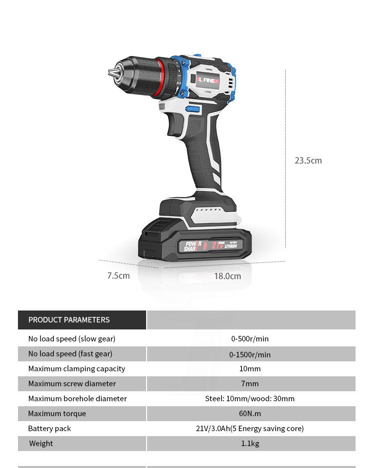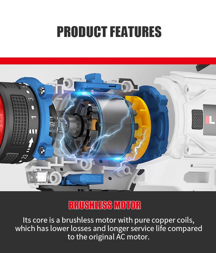 Furadeira de Mão Sem Escova Furadeira Elétrica de Lítio Furadeira de Mão Recarregável Furadeira de Pistola Chave de Fenda Elétrica Multifuncional Conjunto de Furadeira Elétrica 21V18V