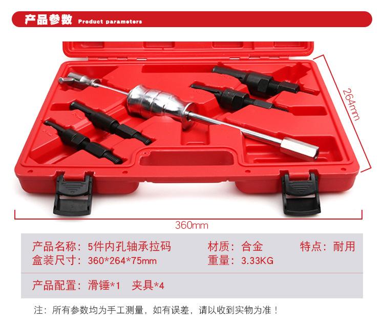 Código de tração do rolamento do furo interno de 5 peças conjunto de martelo deslizante do cavalo de tração do rolamento interno removedor de rolamento do furo interno removedor de tração