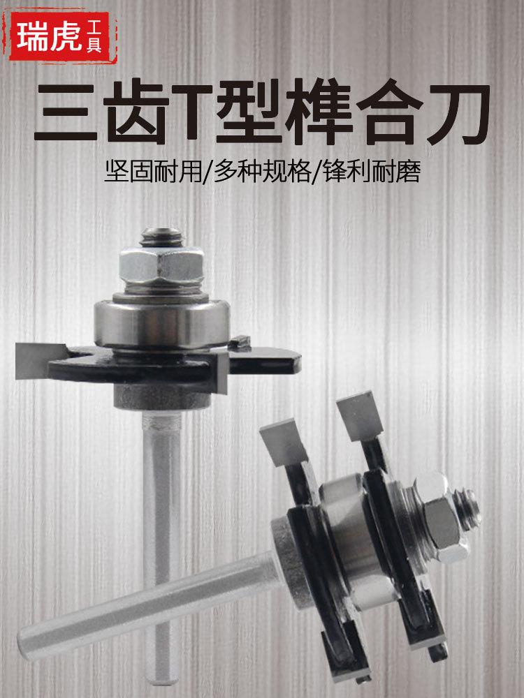 Fresa para carpintaria Faca de espiga 3 dentes T-tipo faca de espiga faca de emenda faca de chão 1/4 alça de combinação de ferramentas para carpintaria terno