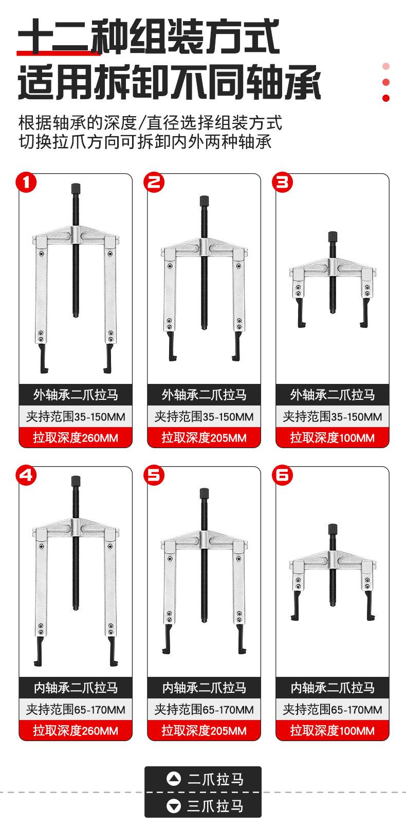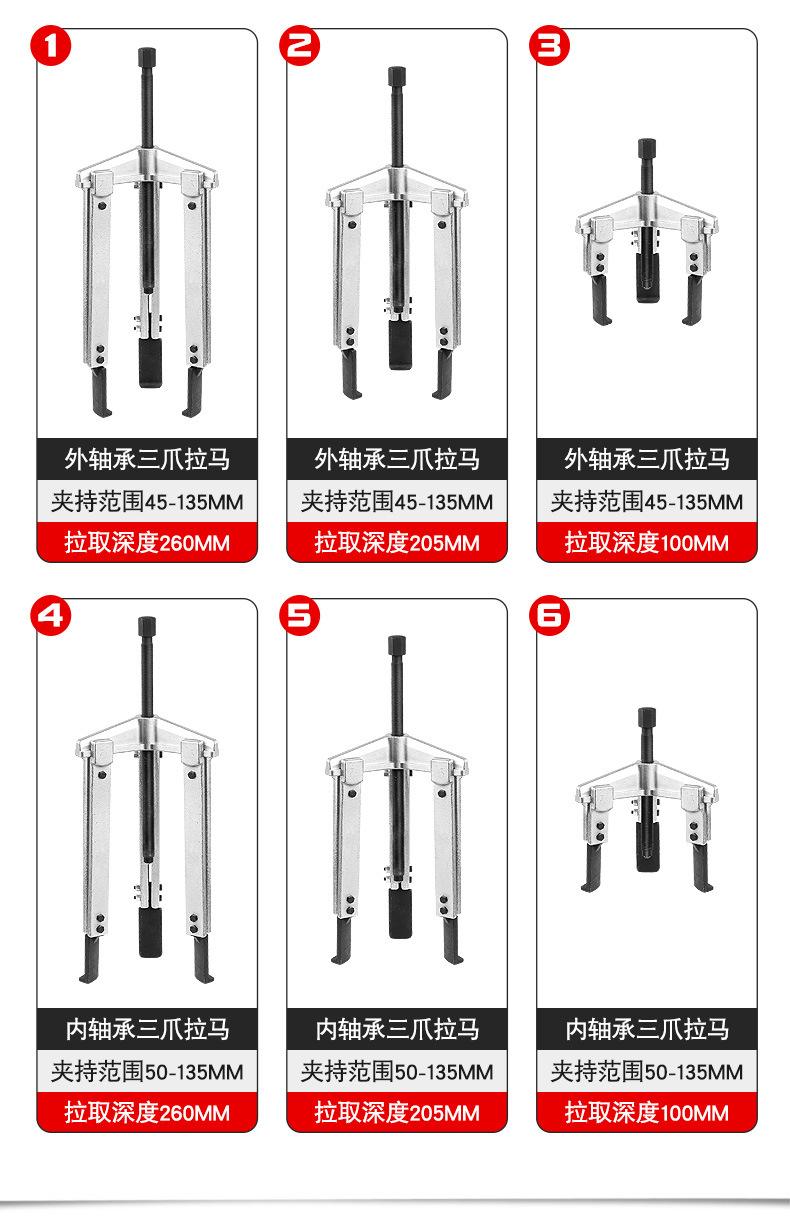 Código de tração de duas mandíbulas, extensão de cavalo de tração de três mandíbulas, rolamento interno e externo, extrator superior, ferramenta de desmontagem e separação Peilin