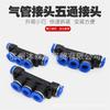 Conector rápido pneumático de cinco vias, interface de plug-in rápido de tubo de ar pneumático, tubo de PU, linha de gás de travamento automático, conector plug-in reto de tubo de ar