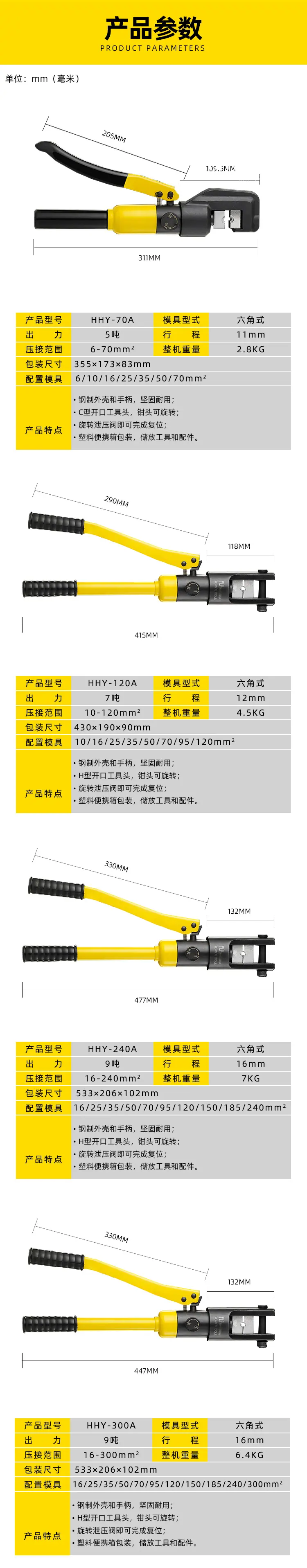 HHY-70A(6-70mm²), HHY-120A(10-120mm²), HHY-240A(16-240mm²), HHY-300A(16-300mm²)