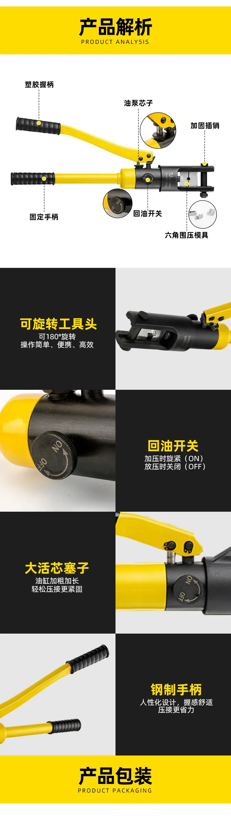 Alicate de crimpagem hidráulica Huanhu, ferramenta manual, alicate hidráulico, alicate terminal elétrico especial, alicate de crimpagem hidráulica YQK-70