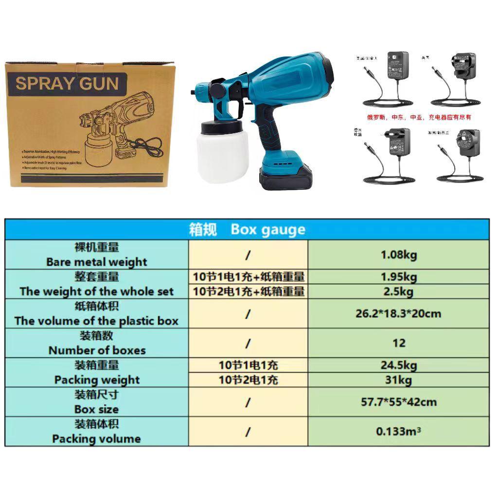 Pistola de pulverização recarregável pistola de pulverização de tinta elétrica pulverizador de tinta sem fio regador de tinta portátil ferramenta elétrica transfronteiriça