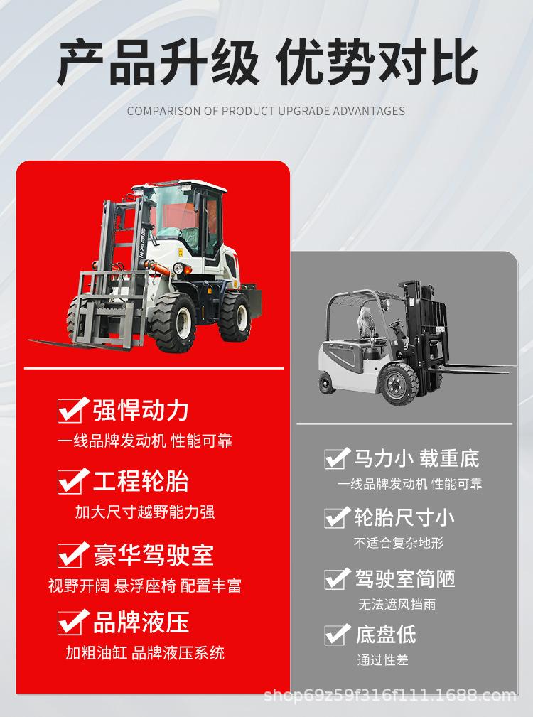 Empilhadeira off-road com tração nas quatro rodas integrada, caminhão de empilhamento de canteiro de obras, empilhadeira off-road multifuncional a diesel