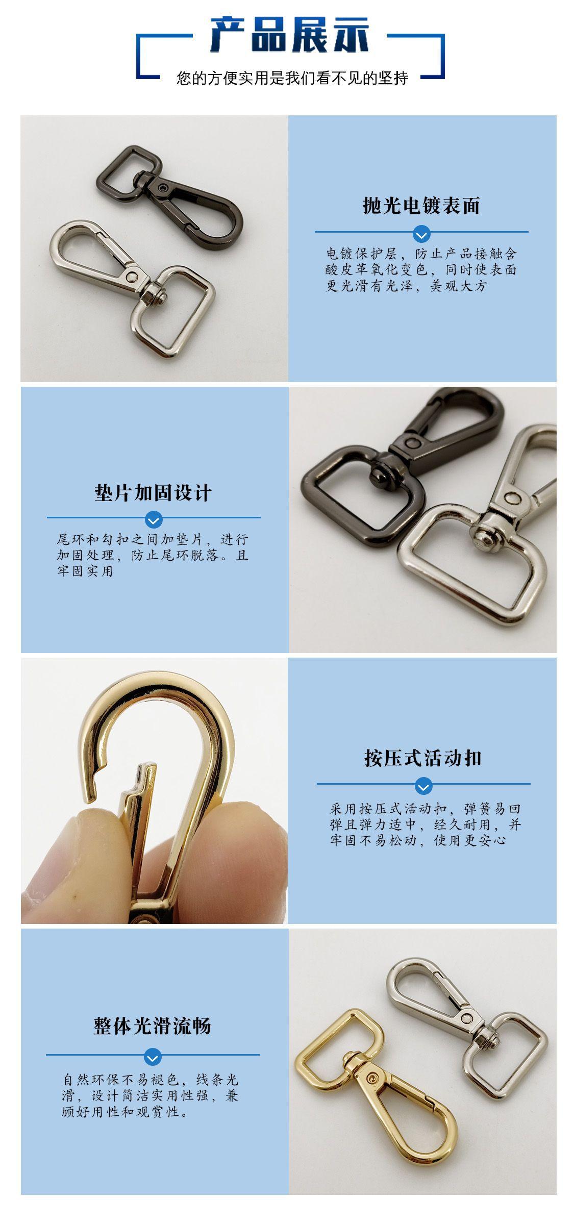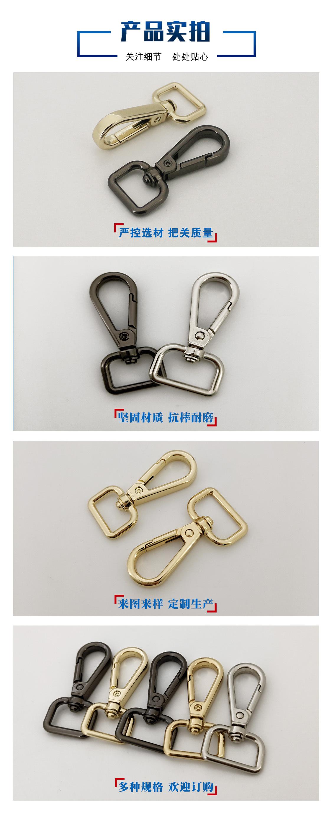 Fábrica atacado bagagem bolsa acessórios de hardware quadrado placa de cauda fivela mola rotativa pingente chave gancho fivela ponto