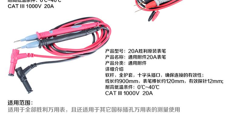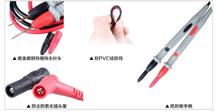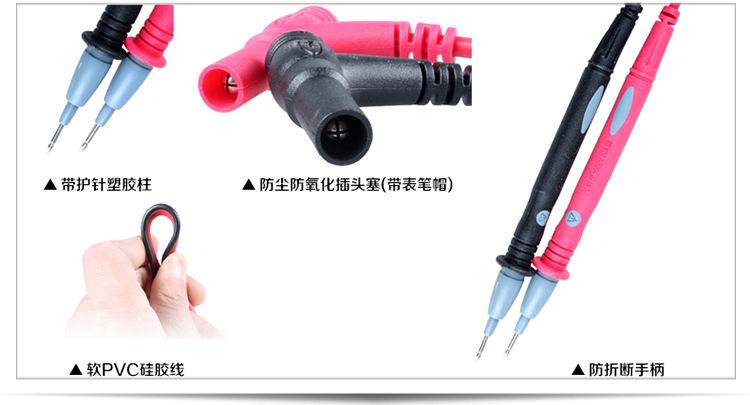 Haste macia, bainha completa, soquete de cabeça cruzada para garantir a eficácia da conexão; comprimento da linha 1000 mm, comprimento da haste da caneta de teste 105 mm, sonda efetiva 18 mm;