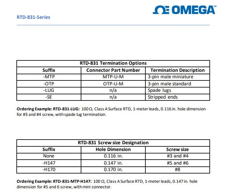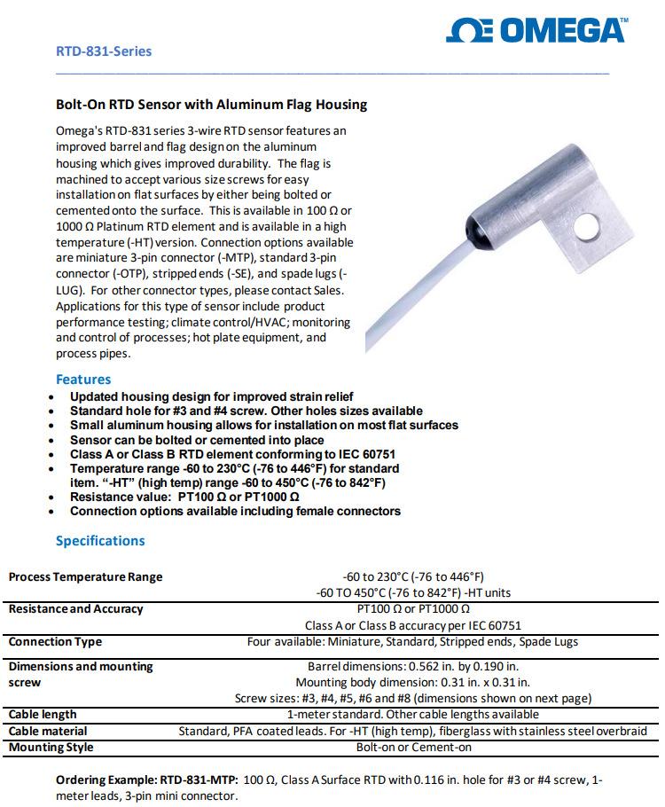 Termorresistor American Omega RTD-831-OTP, RTD-831-4M-SE, RTD-831-PT1000-MTP