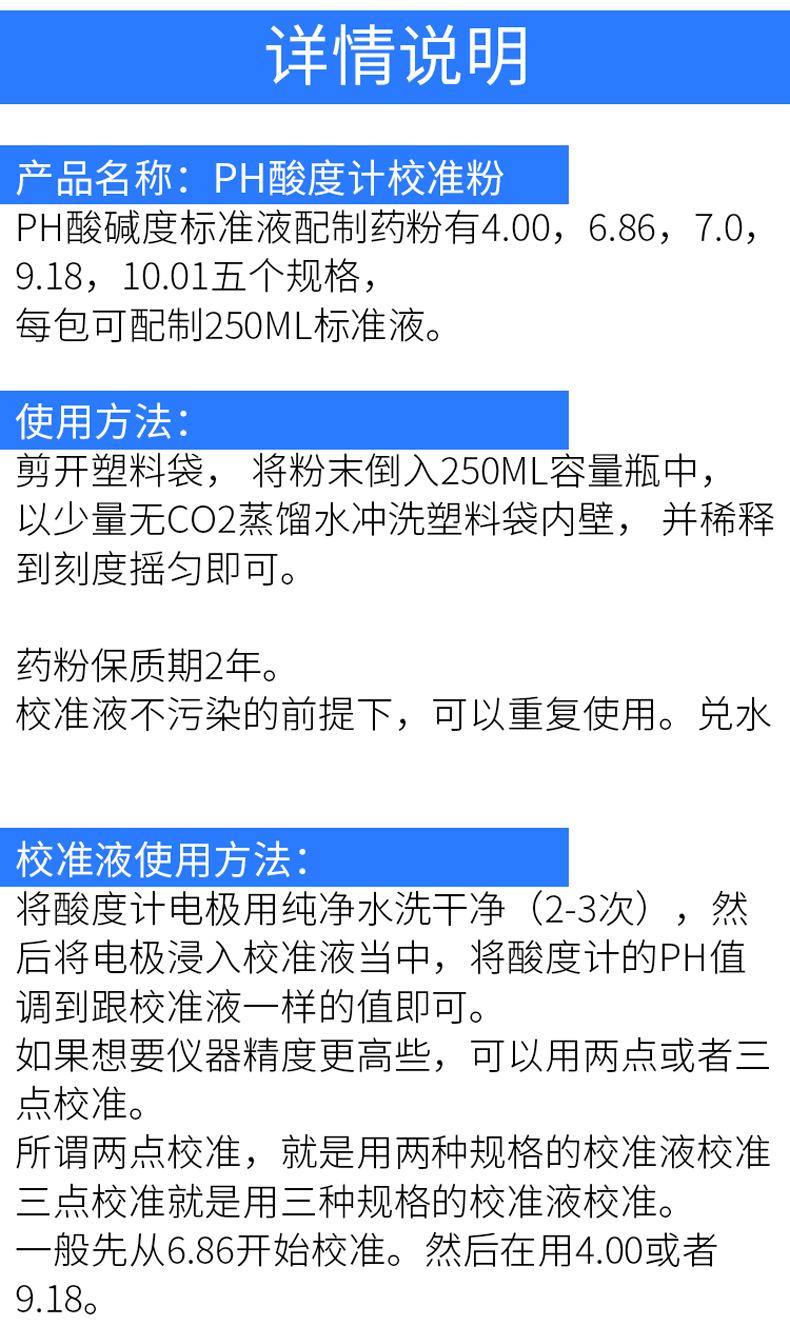 Saco de pó líquido tampão de pH 9,18 6,86 Pó de calibração do medidor de pH 4,01 Pó de calibração padrão do eletrodo