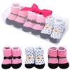Meias de bebê de bolinhas de cor sólida com desenhos animados fofos e transfronteiriços, conjunto de meias de bebê com listras e laços
