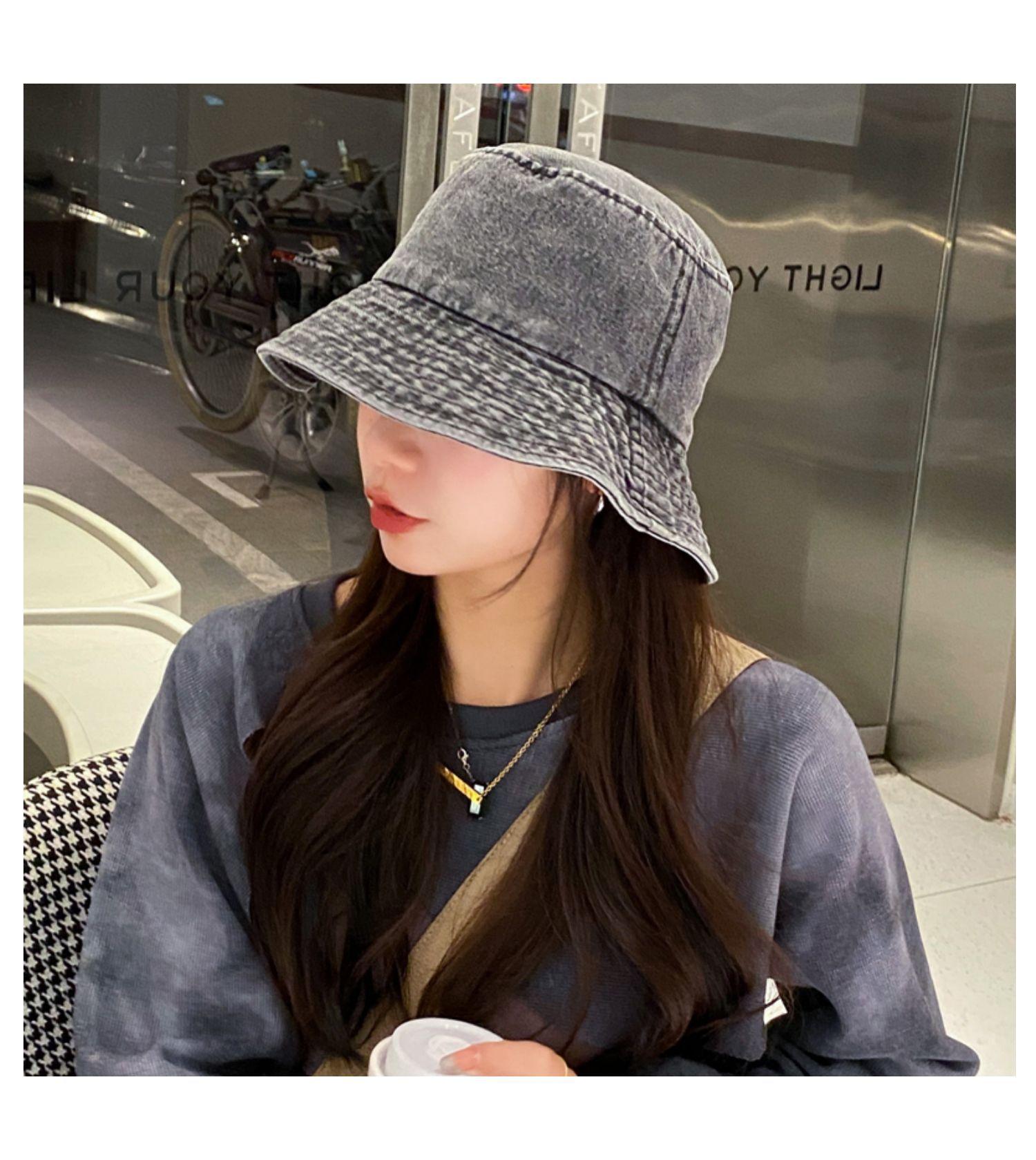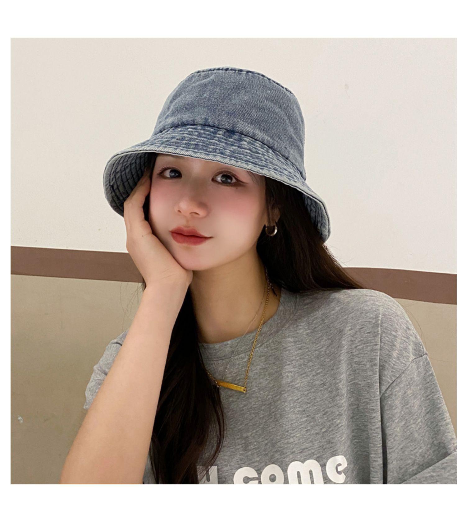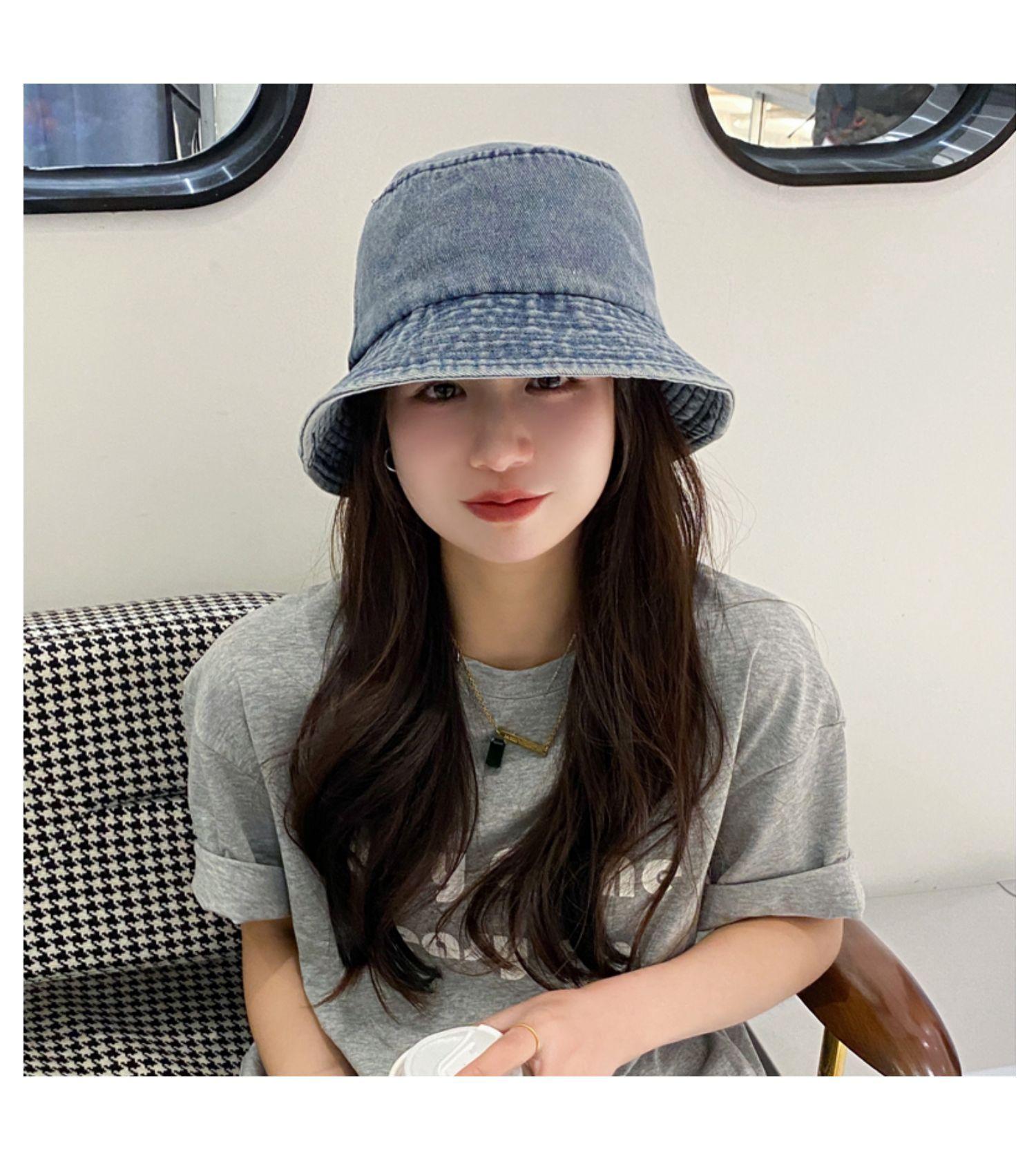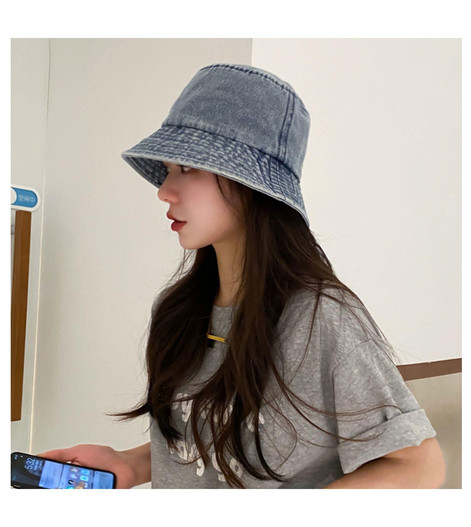 Chapéu de Pescador Fino Lavado de Primavera e Verão para Mulheres, Chapéu Bucket de Denim Simples Versátil Vintage com Aba Larga para Sombra e Proteção Solar