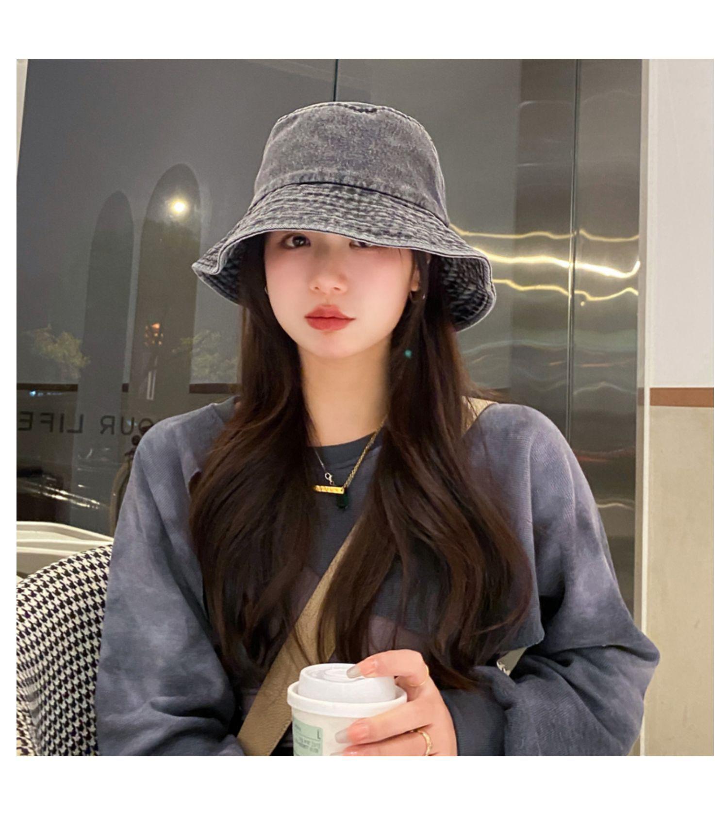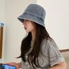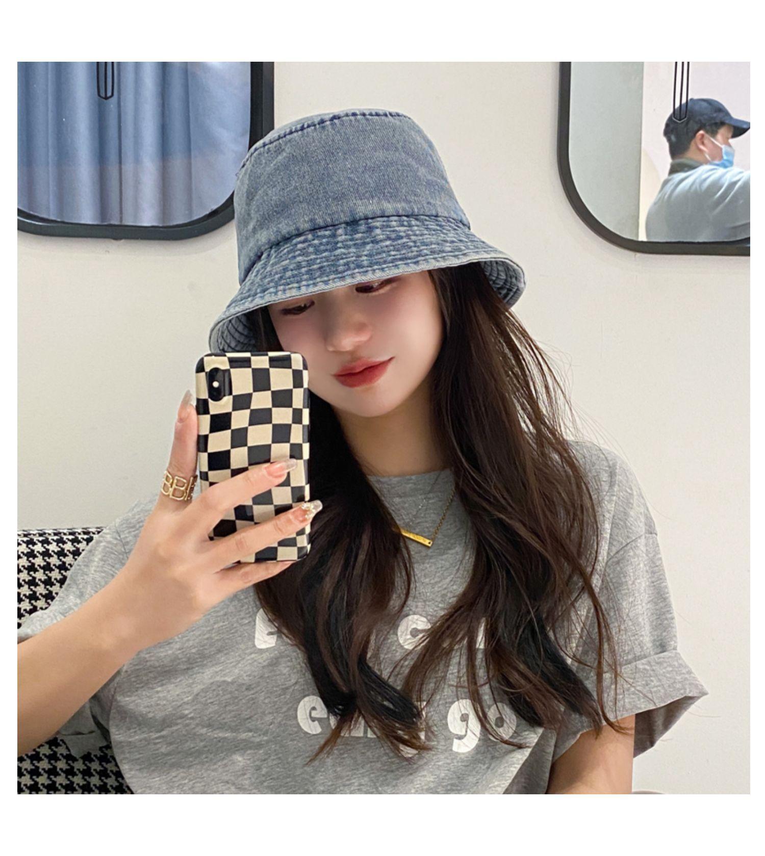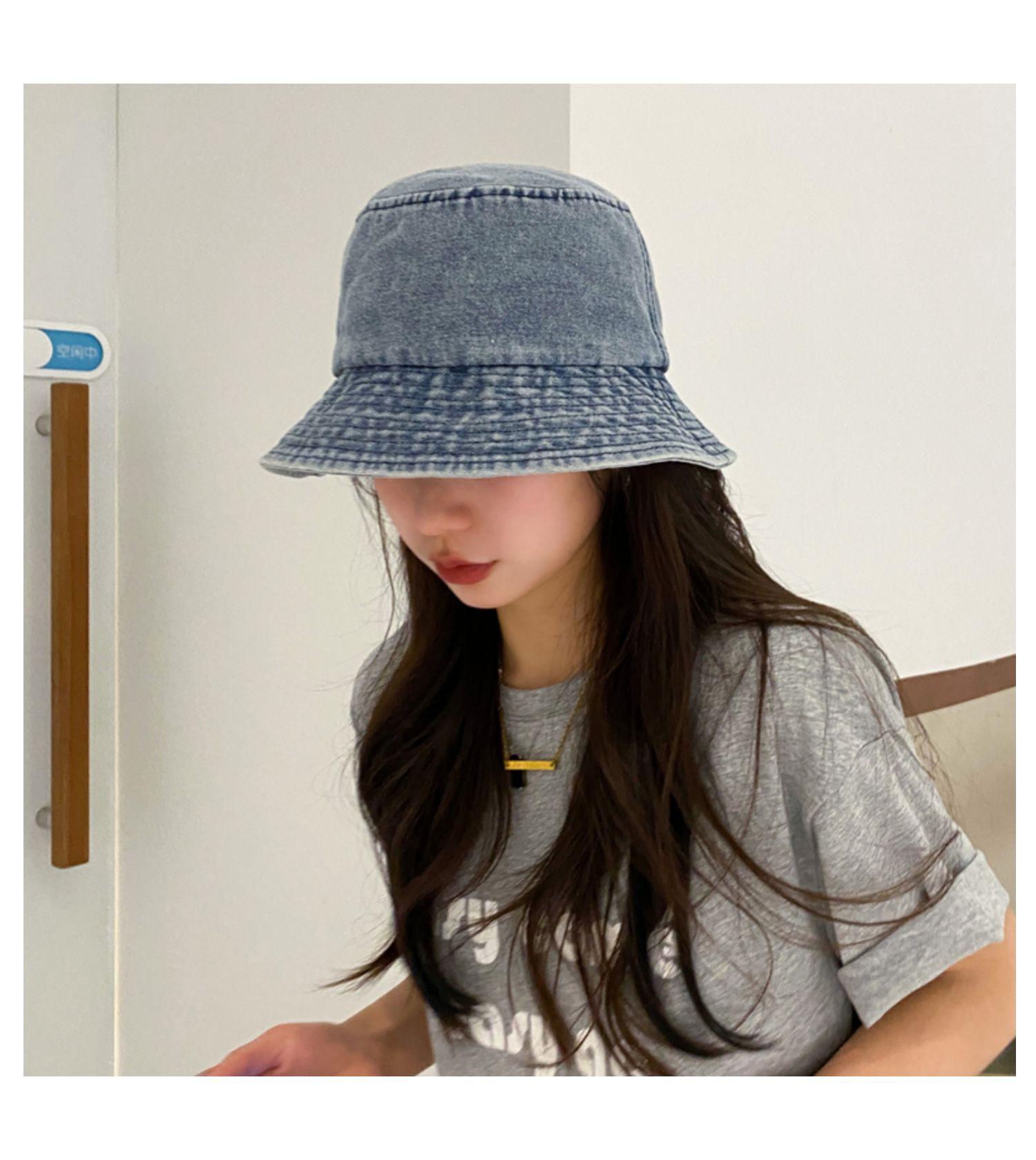Chapéu de Pescador Fino Lavado de Primavera e Verão para Mulheres, Chapéu Bucket de Denim Simples Versátil Vintage com Aba Larga para Sombra e Proteção Solar