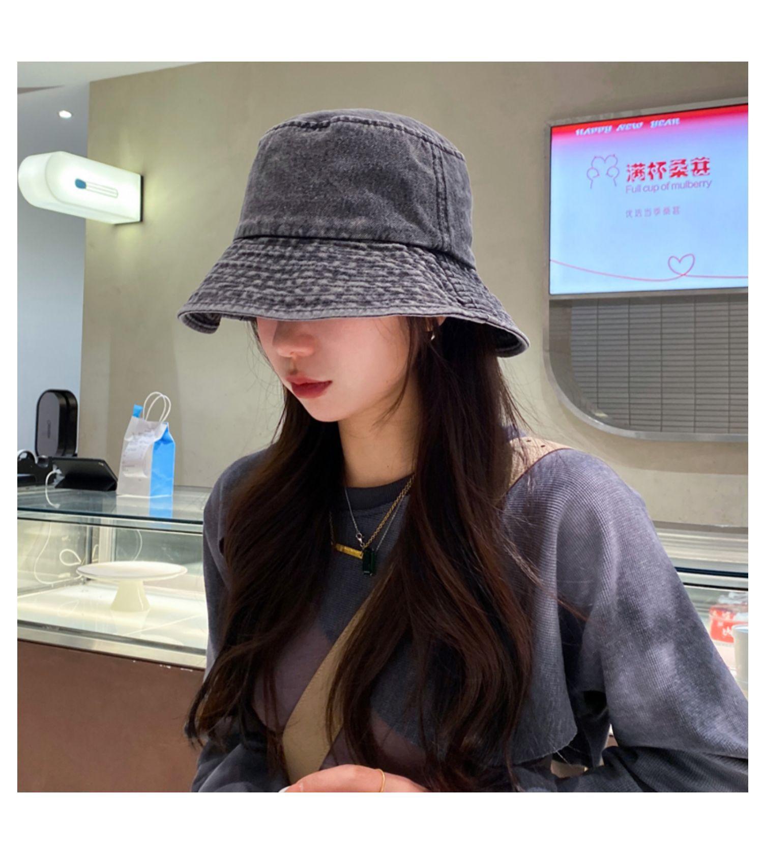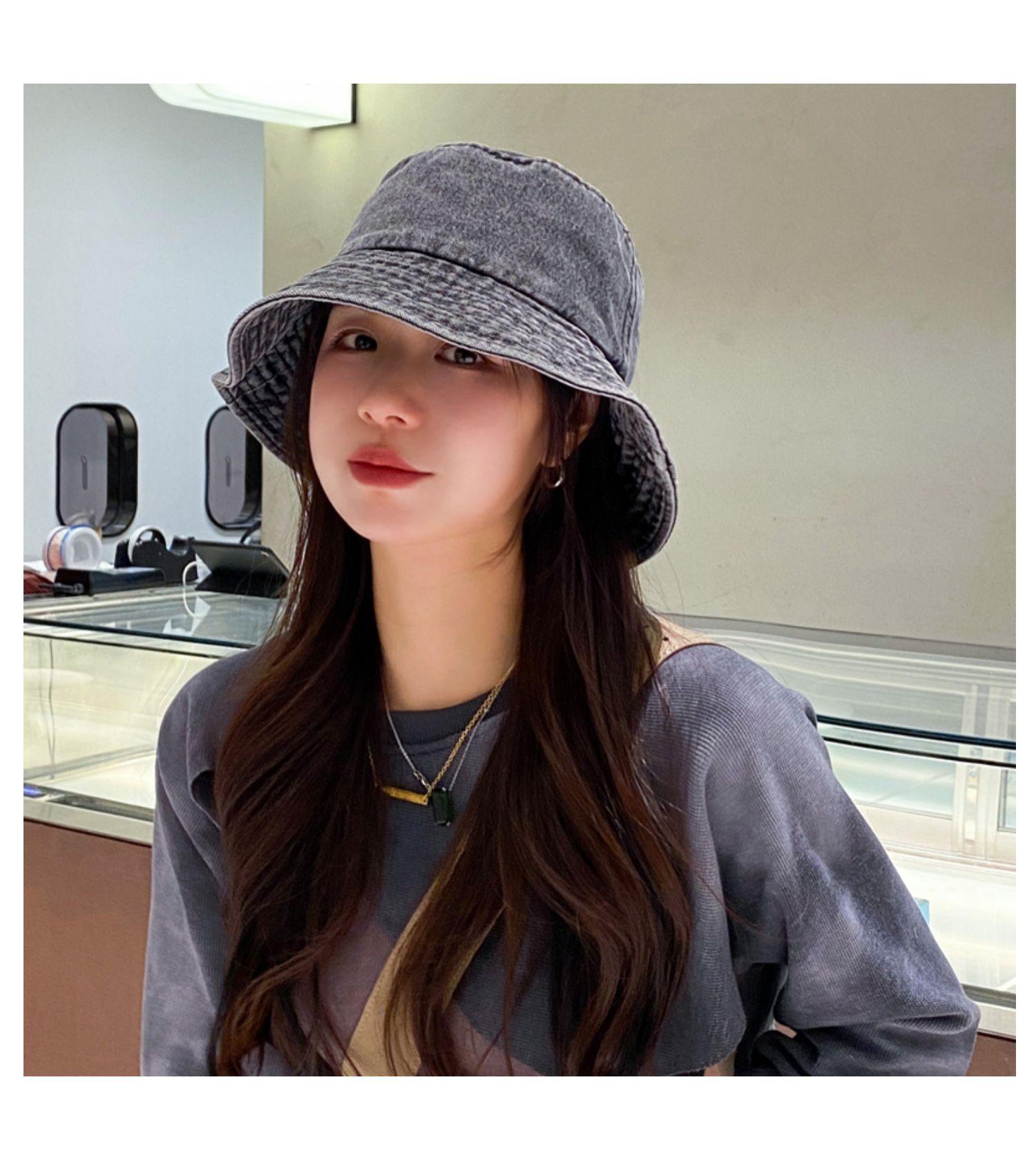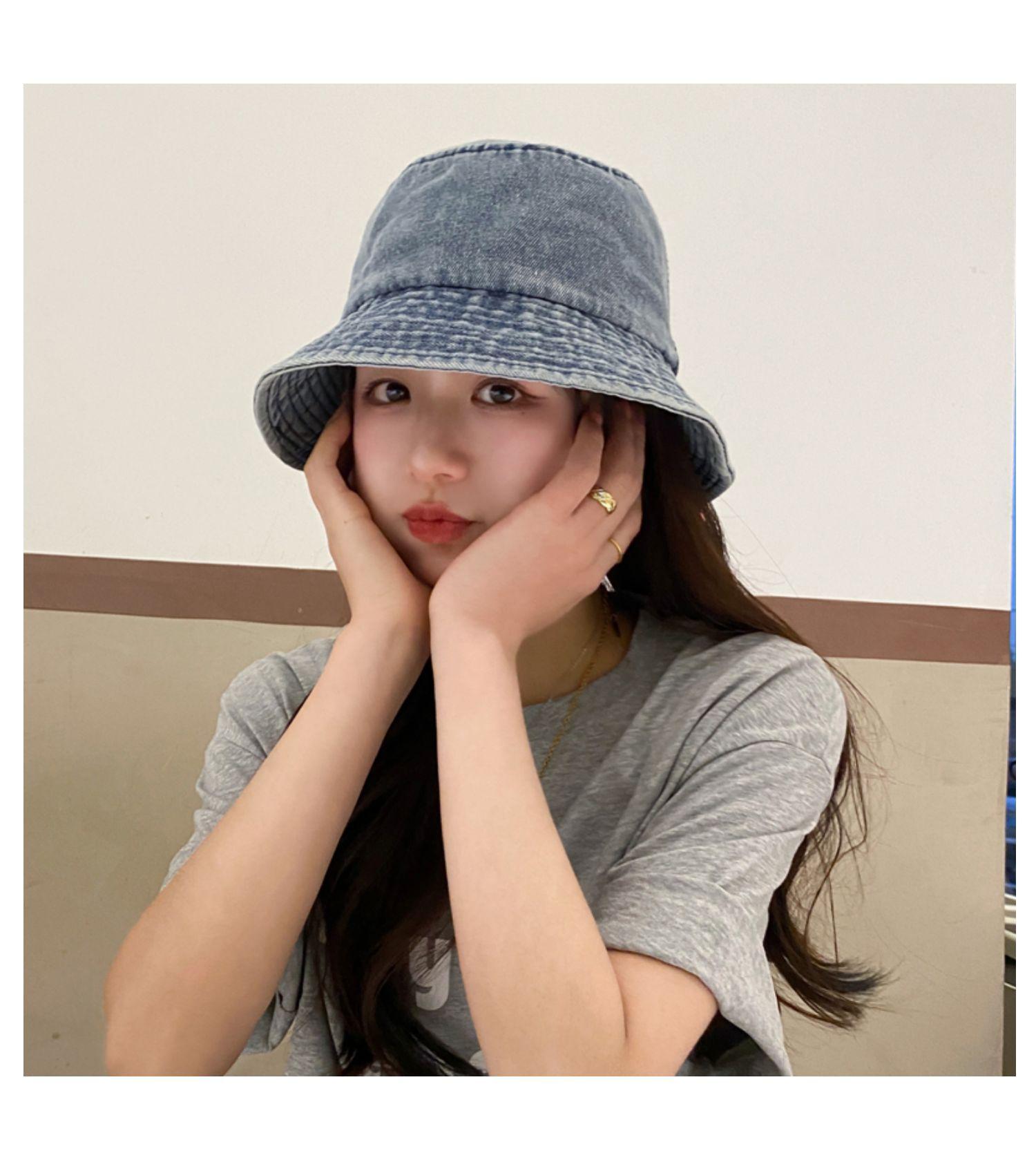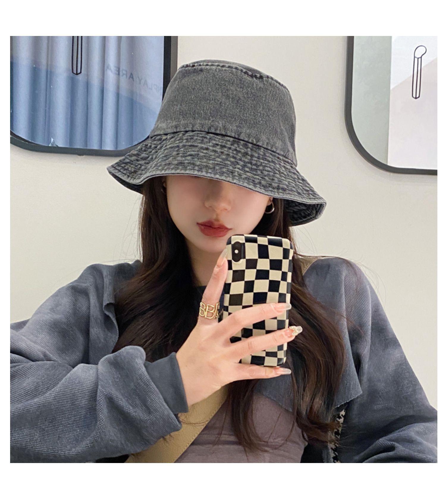 Chapéu de Pescador Fino Lavado de Primavera e Verão para Mulheres, Chapéu Bucket de Denim Simples Versátil Vintage com Aba Larga para Sombra e Proteção Solar