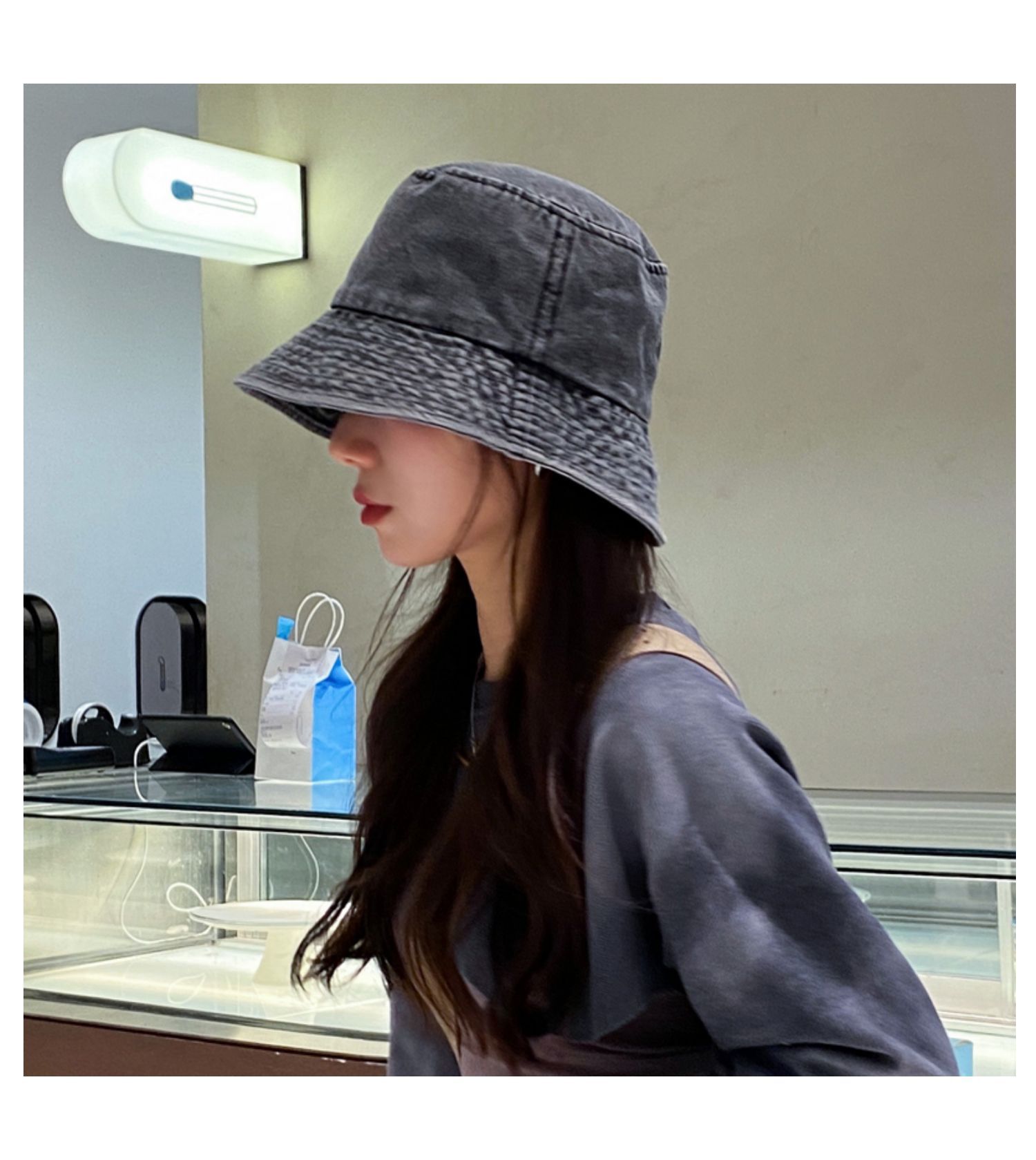 Solid color Denim fisherman's hair-light blue