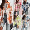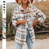 2023 Amazon venda quente transfronteiriça outono e inverno xadrez camisa de bolso solto jaqueta de comprimento médio