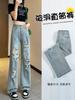 Zhao Rusi Mesmo Estilo Jeans Rasgado Feminino Verão Fino Reto 2024 Novo Cintura Alta Perna Larga Dosando Calças Compridas