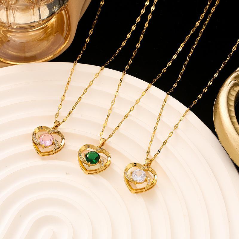 248 full zirconium heart necklace-Golden Green, 248 full zirconium heart necklace-Gold Pink, 248 full zirconiu...