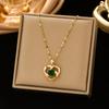 248 full zirconium heart necklace-Golden Green