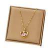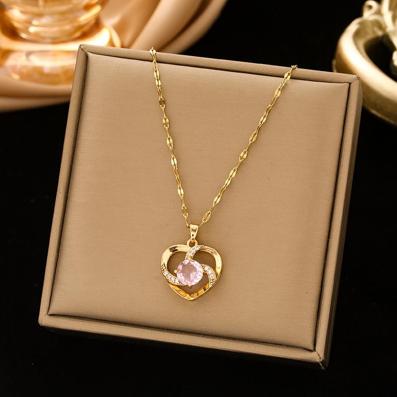 248 full zirconium heart necklace-Gold Pink