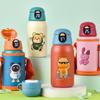 Copo térmico infantil portátil de aço inoxidável 316 com grande capacidade, ideal para crianças do ensino fundamental e médio, com estampa de desenho animado e tampa.