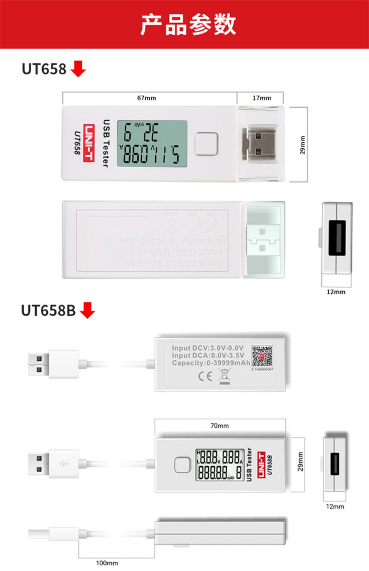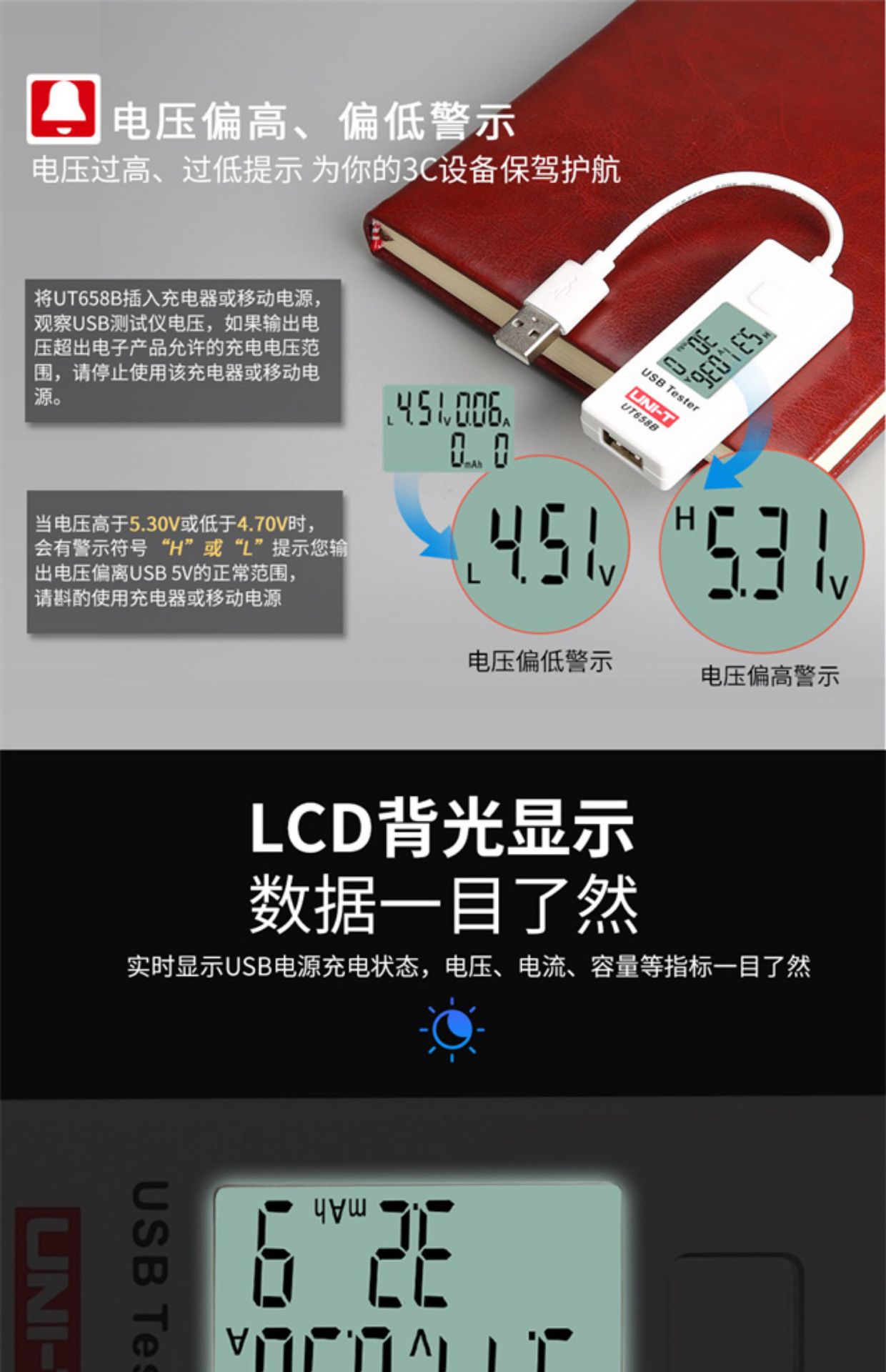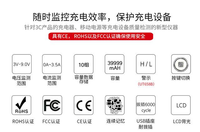 Uleid UT658B USB testador celular tablet notebook porta tensão corrente capacidade instrumento de detecção