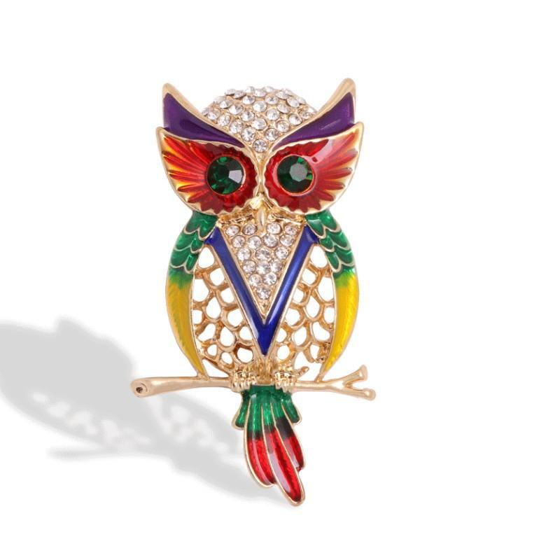 Moda Europeia e Americana Vintage Coruja Broche Oco Strass Esmalte Animal Pin All-match Casaco Corpete Acessórios