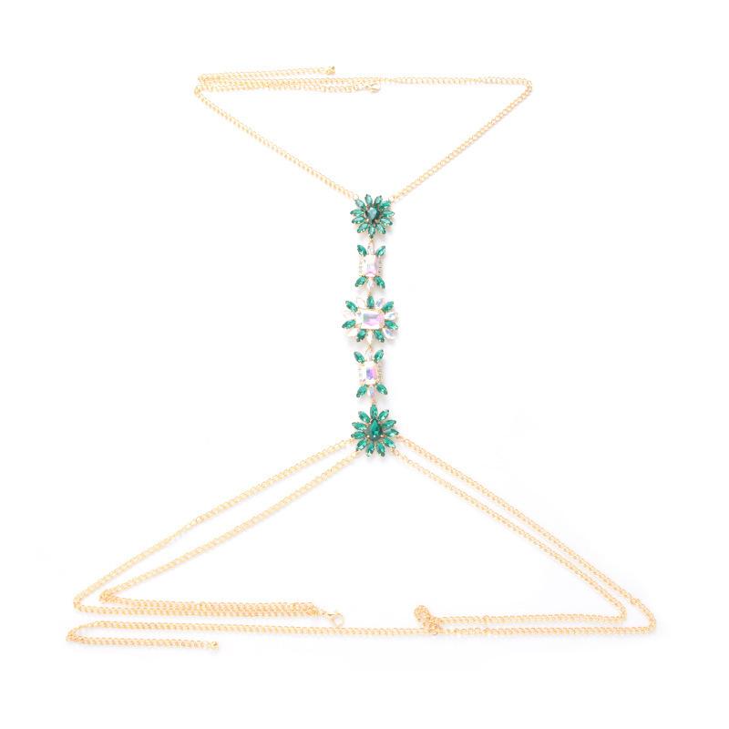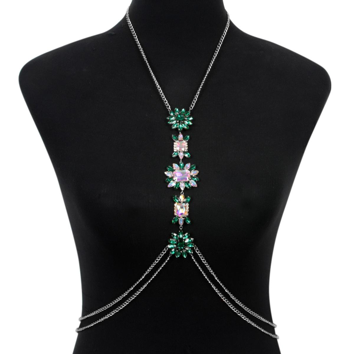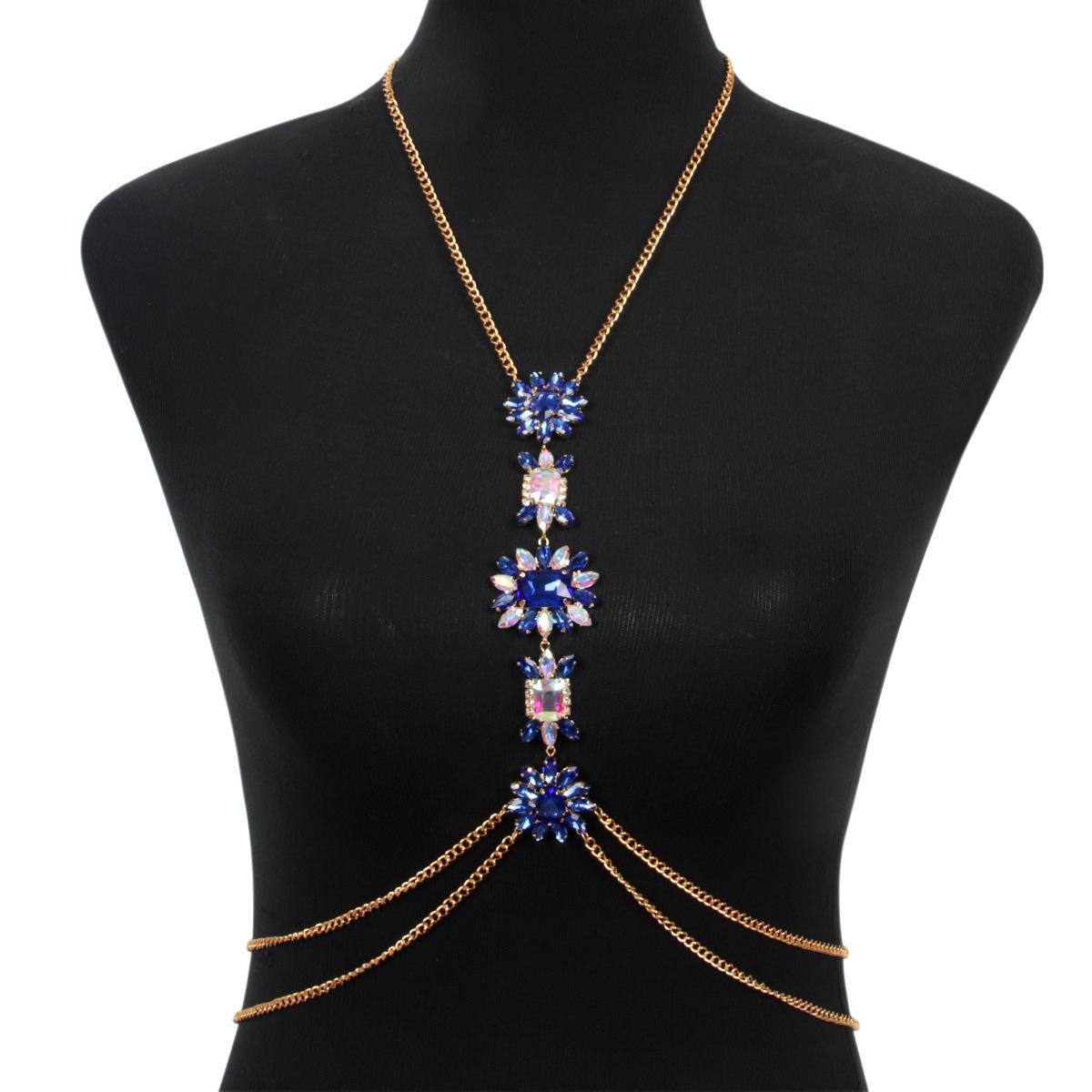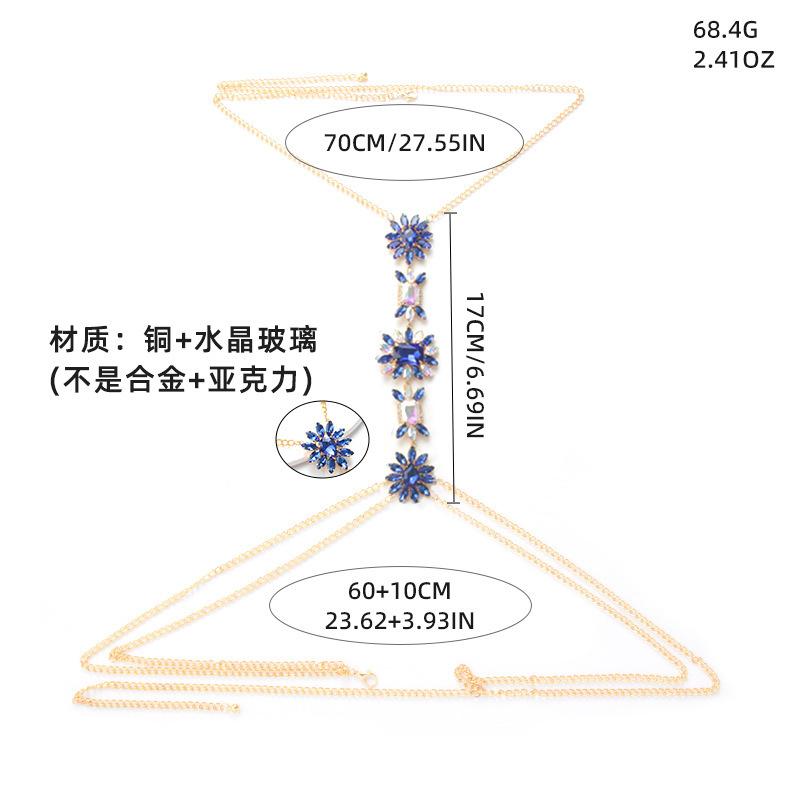 Cadeia de peito quente transfronteiriça moda luxo brilhante colorido diamante Europeu e Americano sexy cadeia de corpo acessórios cadeia de corpo
